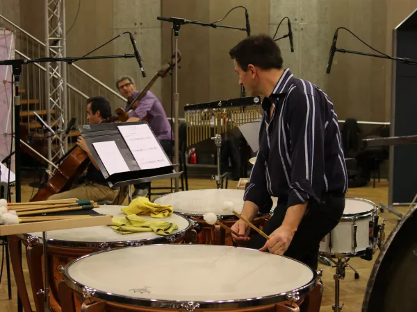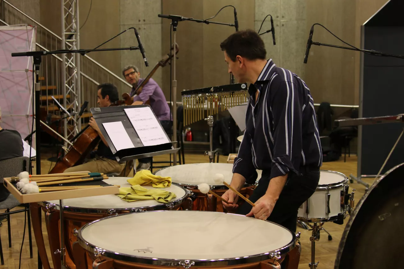 Galerie photos de l'enregistrement de la musique du spectacle "Ami, entends-tu ?" à la maison de la radio avec les musiciens de Radio France sur une musique originale d'Eric Le Guen