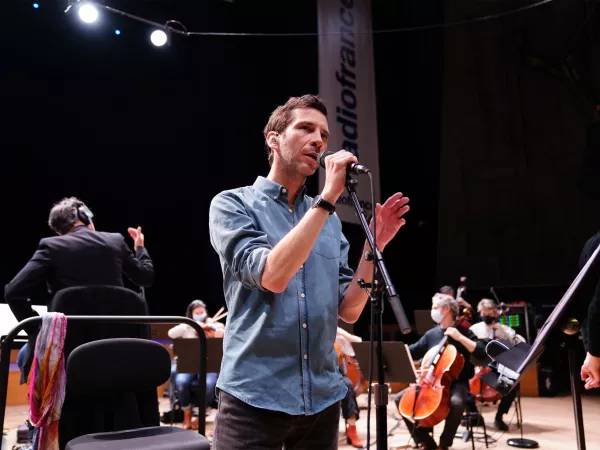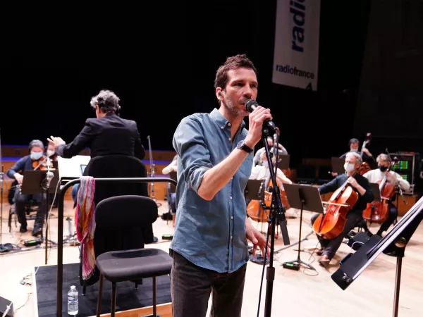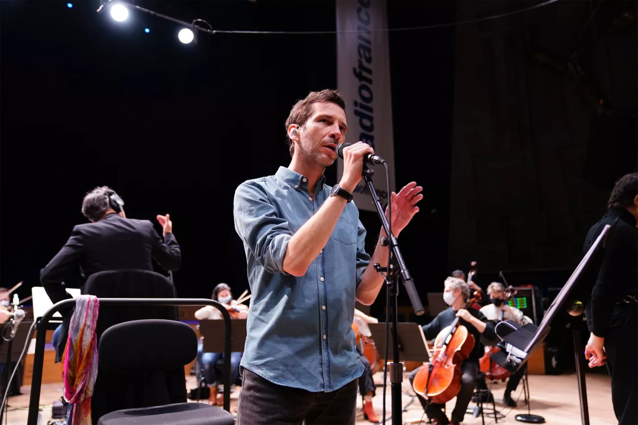 Il chante la « mélancolie heureuse », selon son ami Didier Varrod , qui m’a permis d’assister à l’enregistrement de son nouvel album au studio 104 de la Maison de la radio et de la musique.