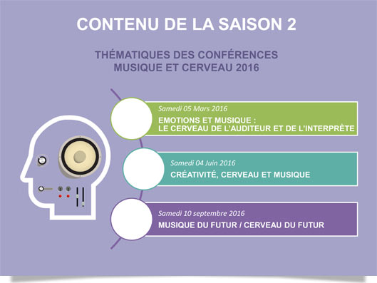 Nous avons naturellement choisi de développer un cycle de conférences destiné aux professionnels et amateurs afin d’exposer les travaux de recherche sur les liens entre cerveau et musique.