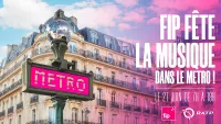 Ce mercredi 21 juin, jour national où la musique est fêtée dans la rue, Fip prend le métro, la RATP prend le micro. Les usagers du métro vont poser leur casque et mettre leur smartphone en veille le temps de leur déplacement sous terre. FIP s’engage à transformer le voyage quotidien des Parisiens en un moment de célébration musical collectif. Le métro, lieu emprunté par des millions de passagers chaque jour, change de couleur et devient grâce à FIP, une radio, avec toute la journée