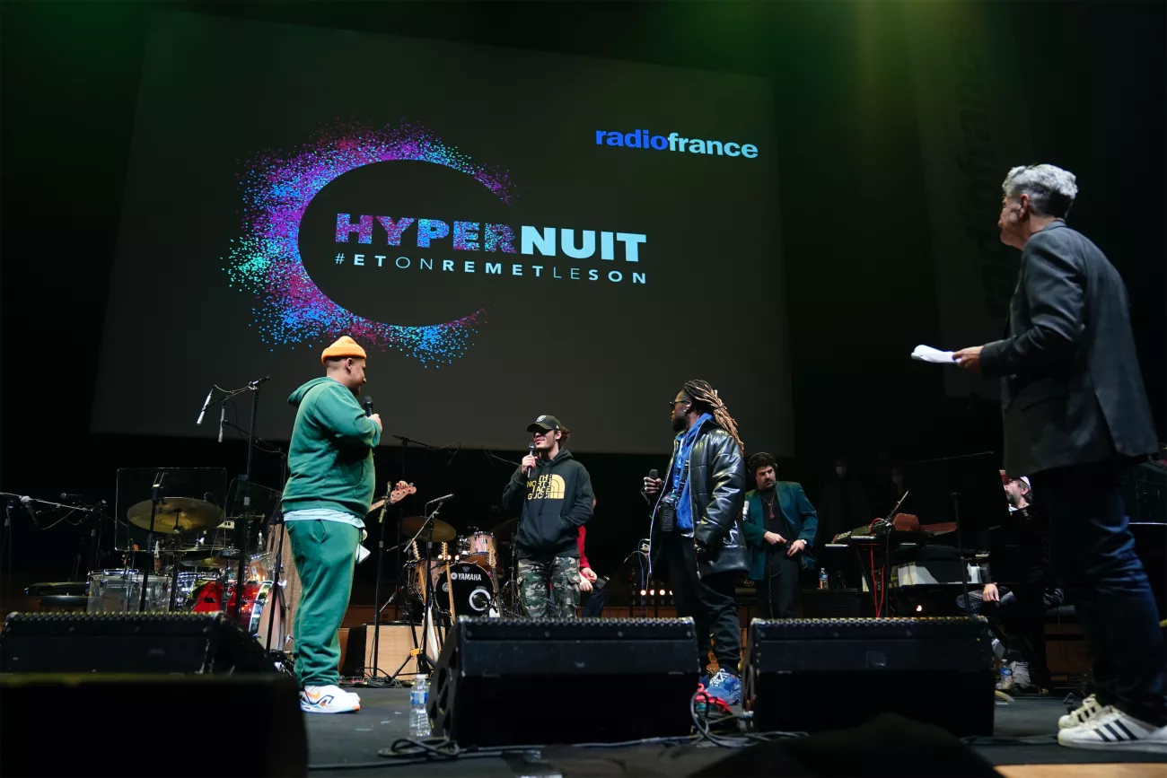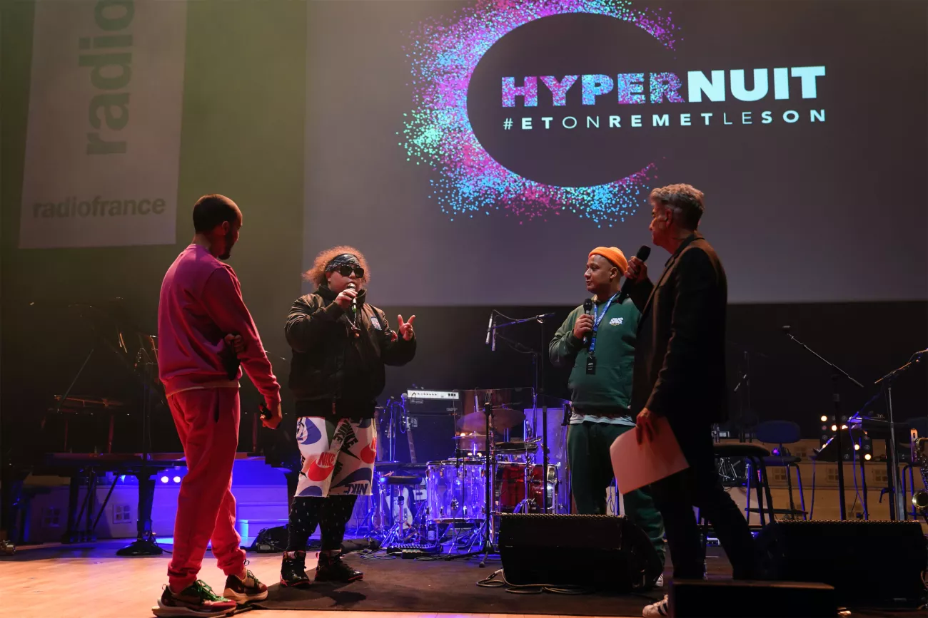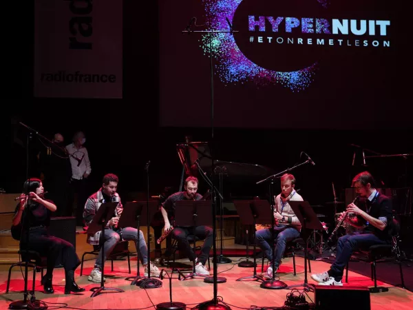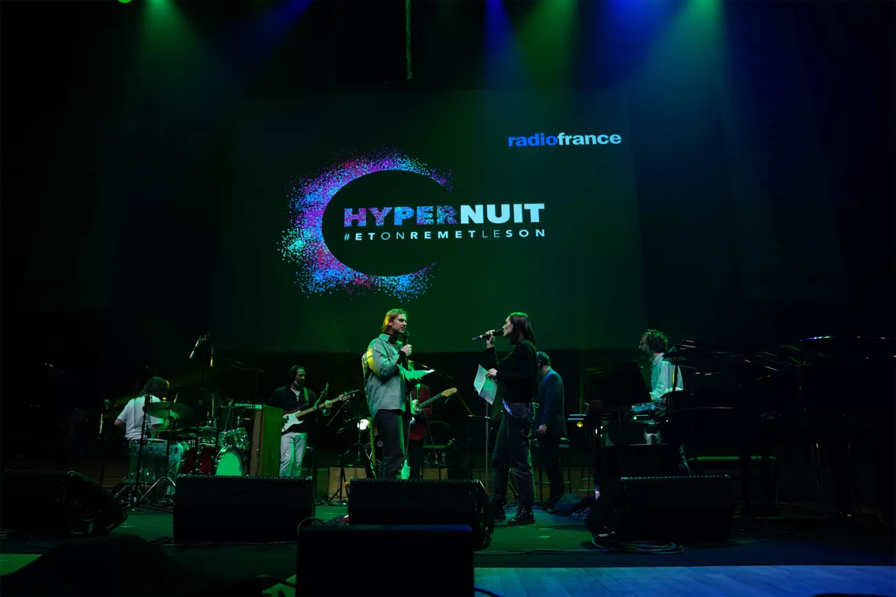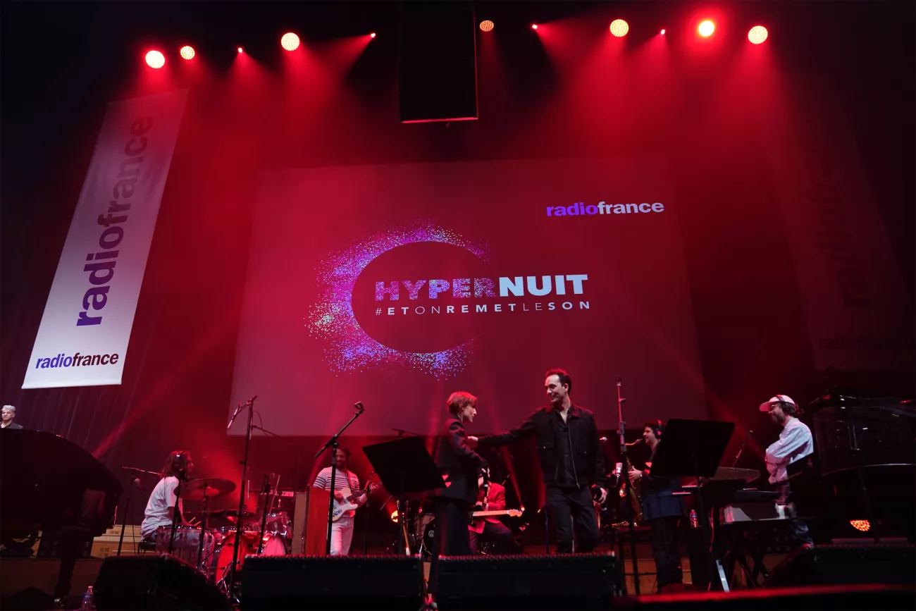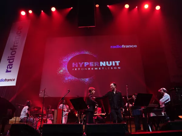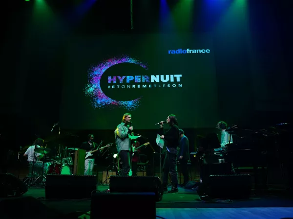Pendant près de 6 heures, plus d'une centaine d'artistes se relaieront, en direct depuis la scène du Studio 104 de Radio France pour vous offrir des duos, des trios, des rencontres artistiques inédites, des témoignages d’acteurs de la musique, des moments imaginaires comme si on y était et... de l’émotion pour Une Hypernuit avec toutes les musiques sur France Inter, France Bleu, France Musique, Fip et Mouv' !