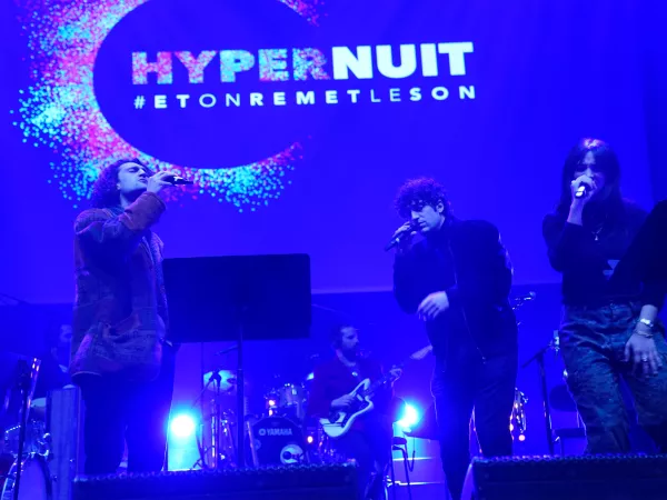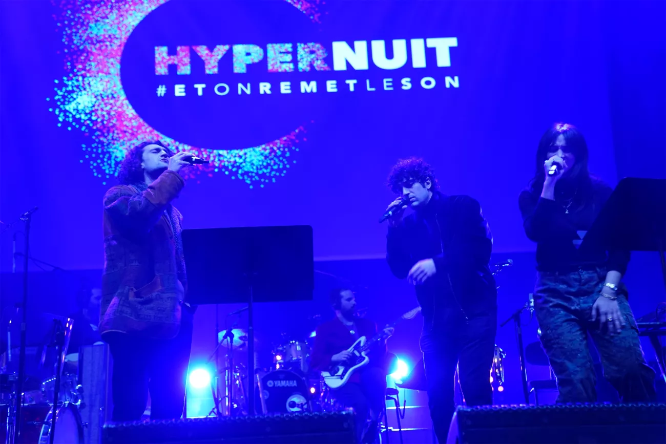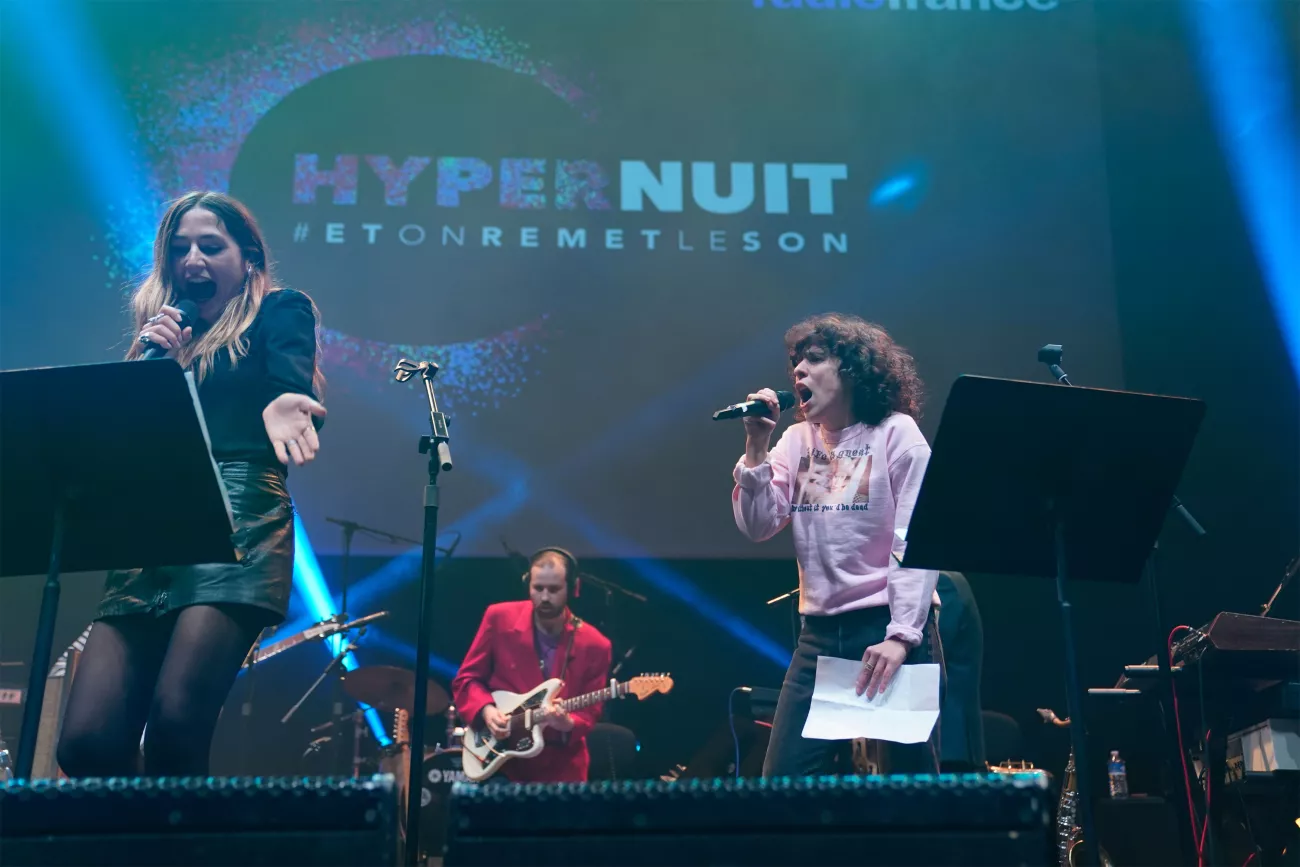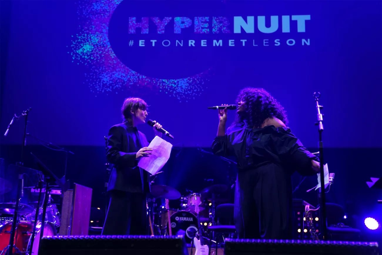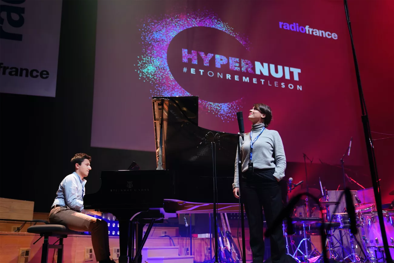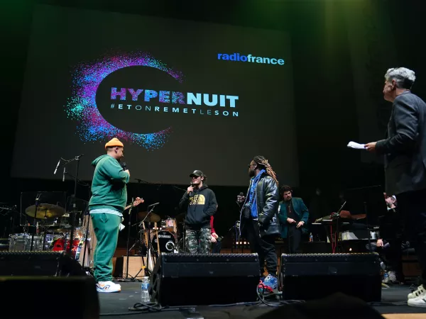 Pendant près de 6 heures, plus d'une centaine d'artistes se relaieront, en direct depuis la scène du Studio 104 de Radio France pour vous offrir des duos, des trios, des rencontres artistiques inédites, des témoignages d’acteurs de la musique, des moments imaginaires comme si on y était et... de l’émotion pour Une Hypernuit avec toutes les musiques sur France Inter, France Bleu, France Musique, Fip et Mouv' !