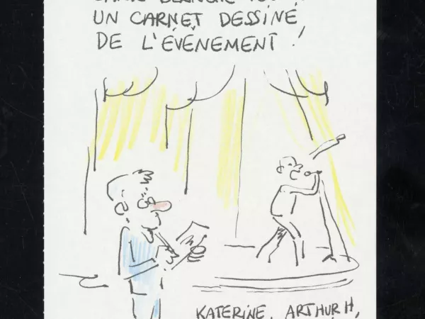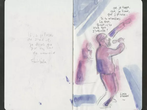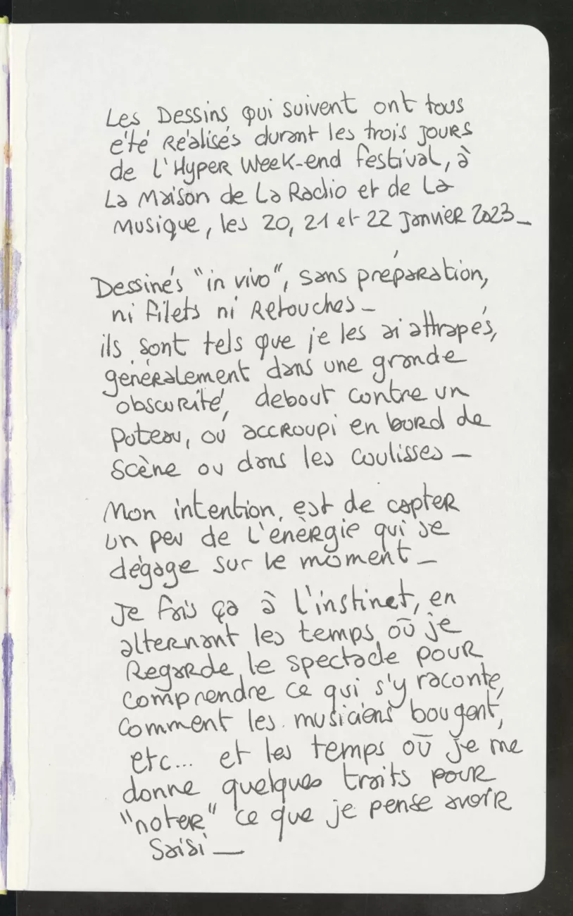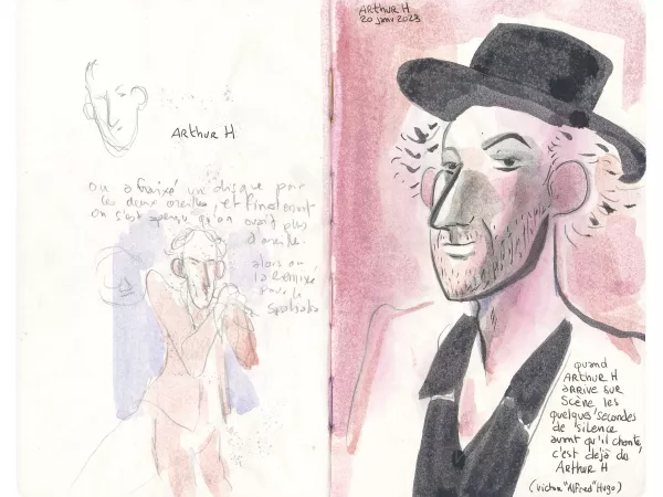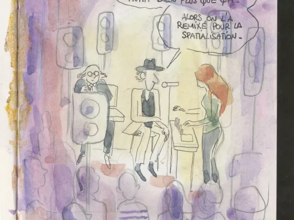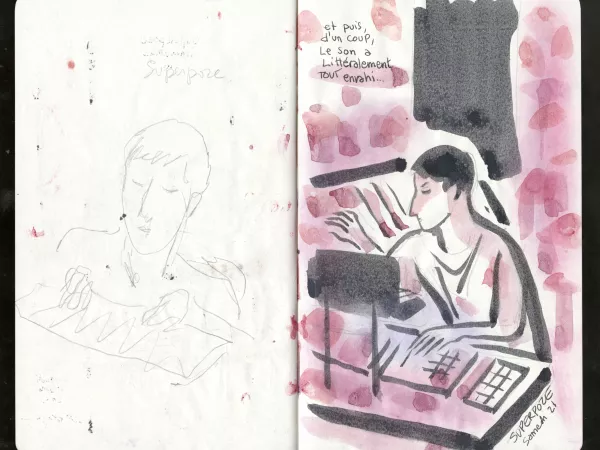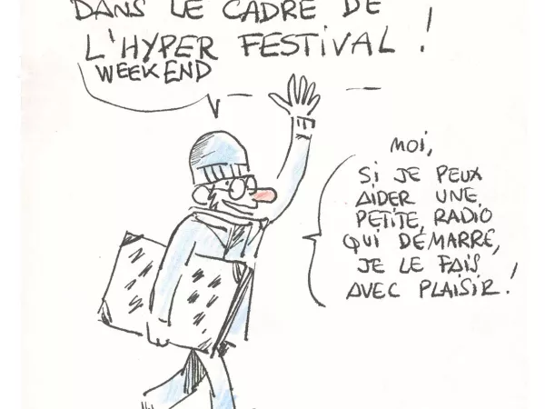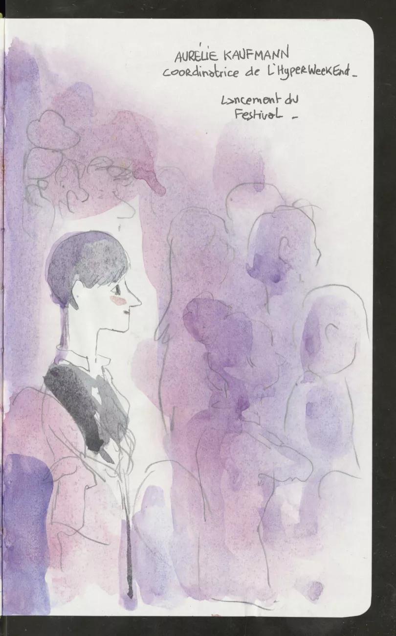 Lors de la deuxième édition d'Hyper Weekend Festival, le dessinateur Alfred a arpenté le festival durant les 3 jours dans tous les lieux de rencontres et de concerts de l'Auditorium au Studio 104 en passant par le 22eme étage de la tour et les foyers.