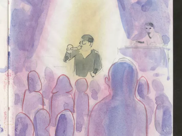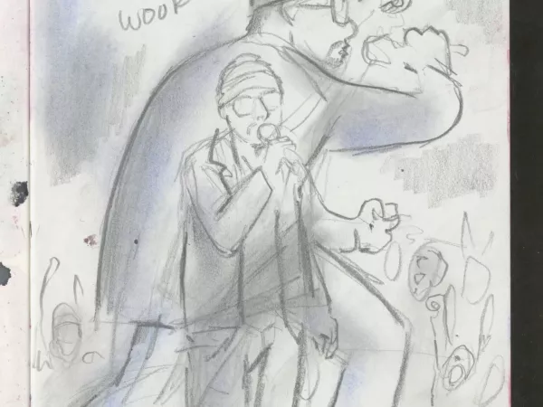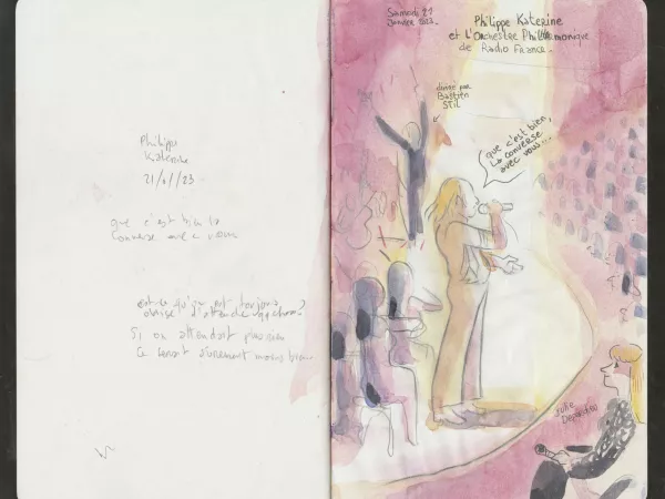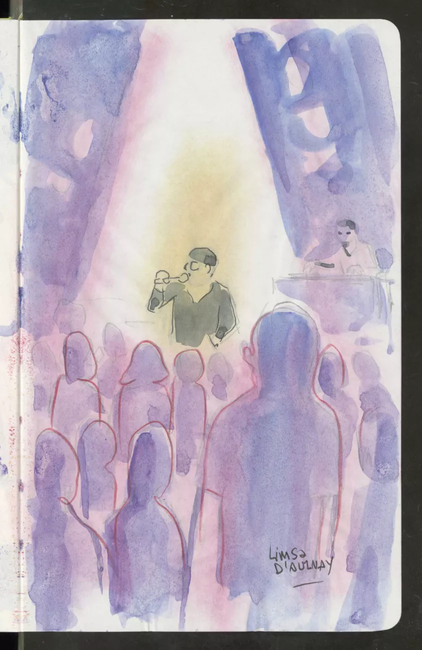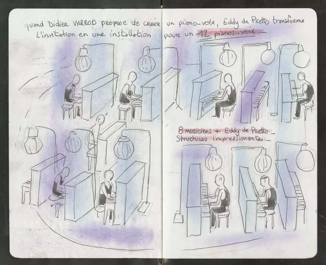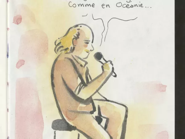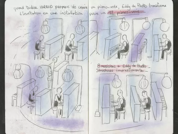 Lors de la deuxième édition d'Hyper Weekend Festival, le dessinateur Alfred a arpenté le festival durant les 3 jours dans tous les lieux de rencontres et de concerts de l'Auditorium au Studio 104 en passant par le 22eme étage de la tour et les foyers.