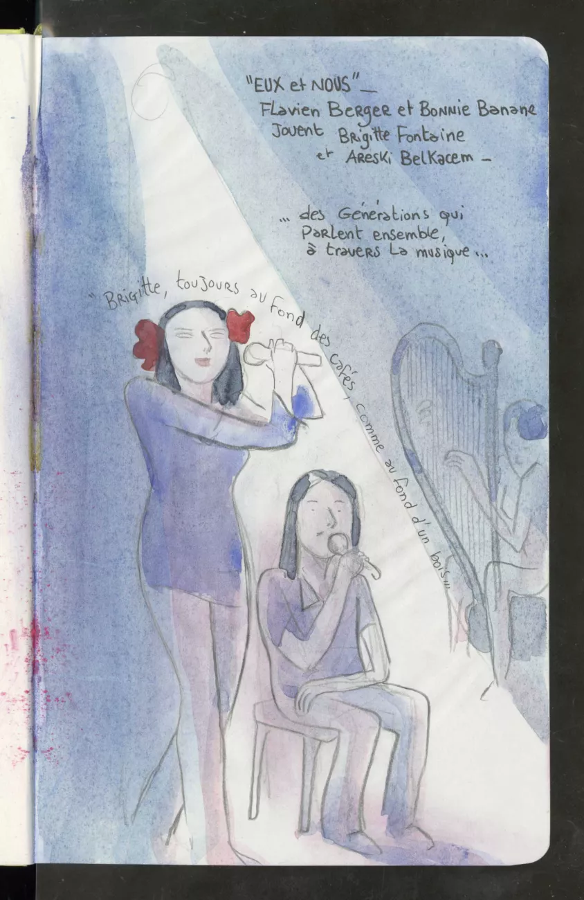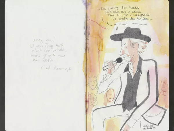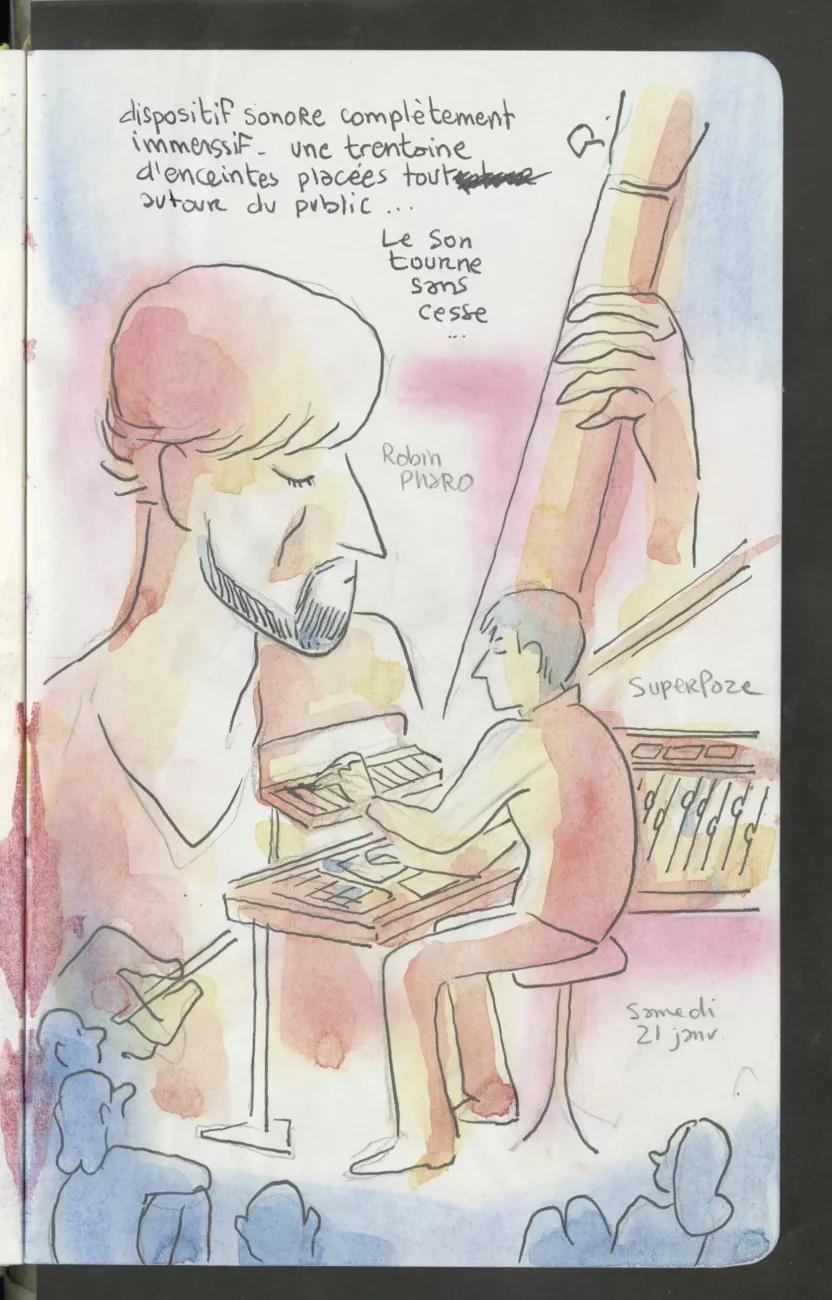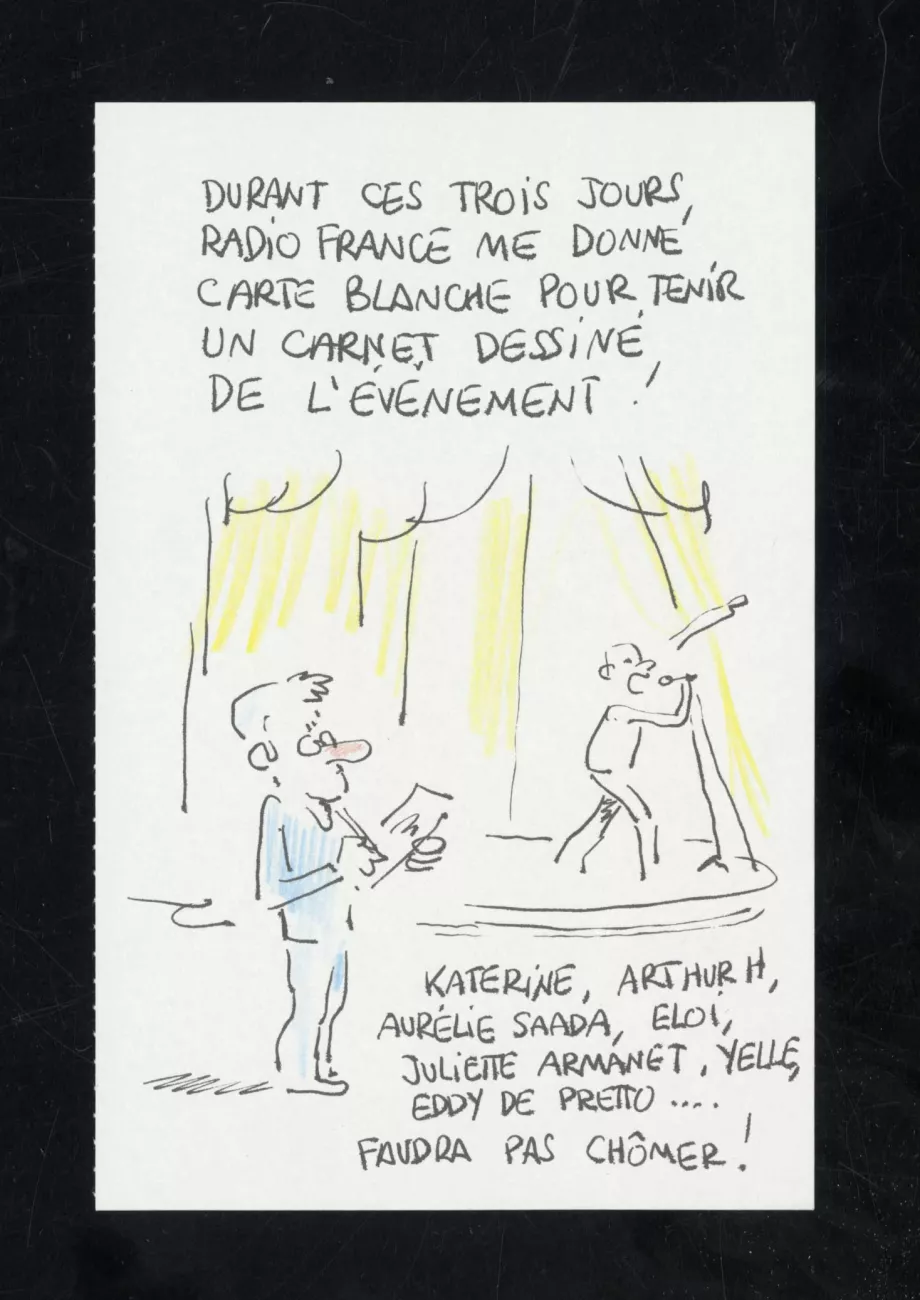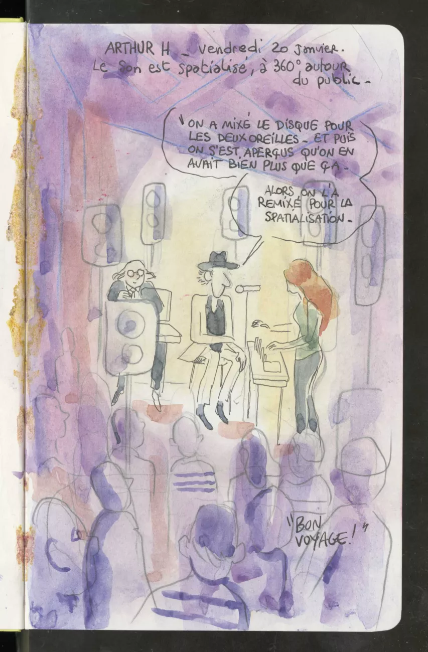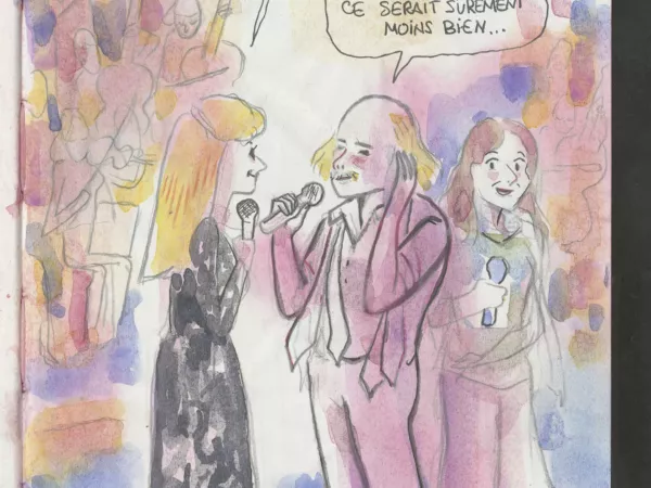 Alfred a ainsi croqué les concerts, les performances, les créations, les rencontres, les masterclasses, les soirées clubbing… dans un journal afin que tout le festival revive sous ses traits de crayons lors de l’exposition « Rock ! Pop ! Wizz ! Quand la BD monte le son » à la Cité de la BD à Angoulême.