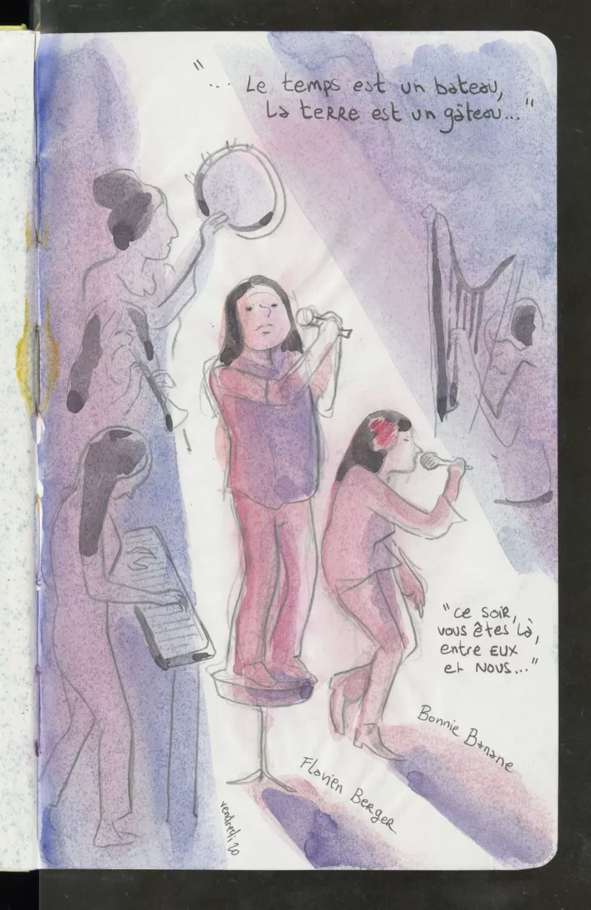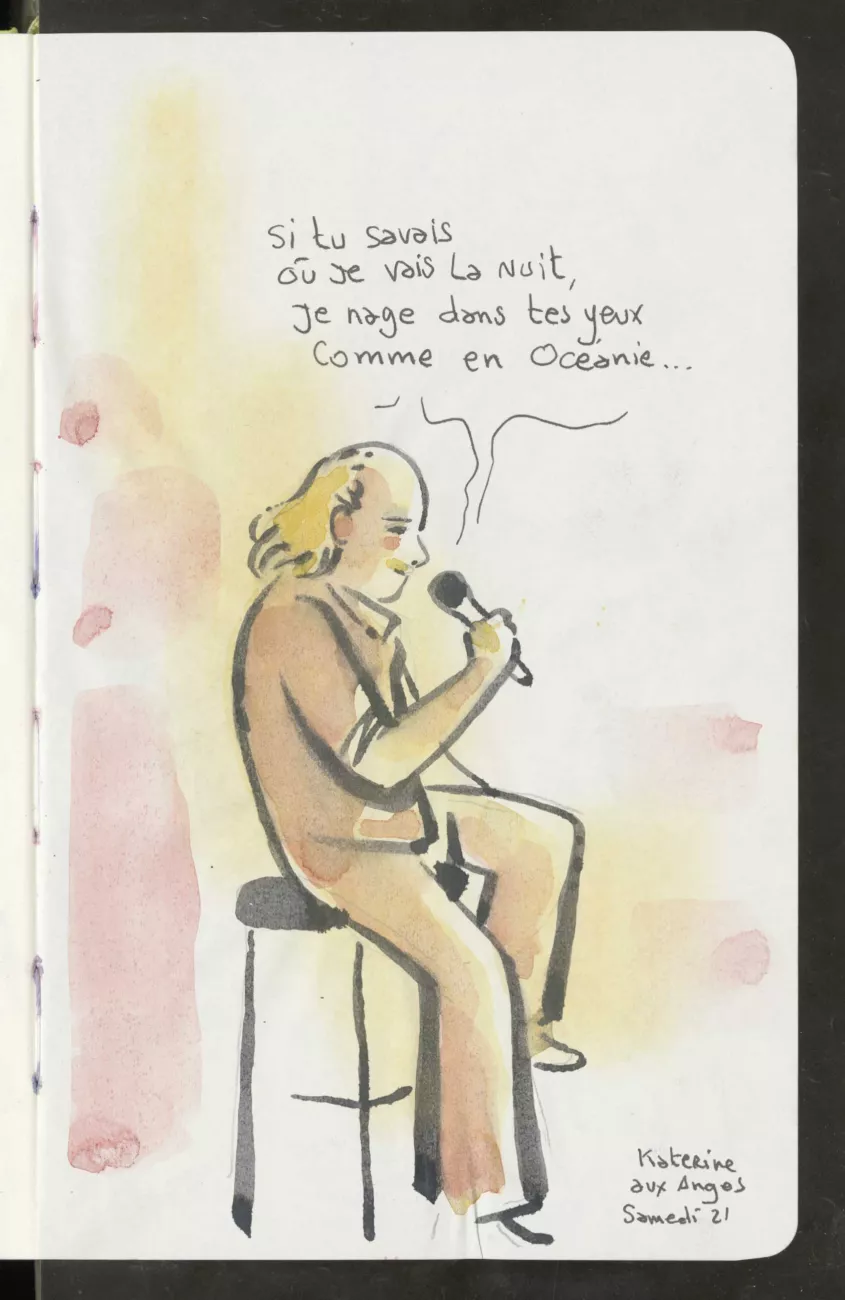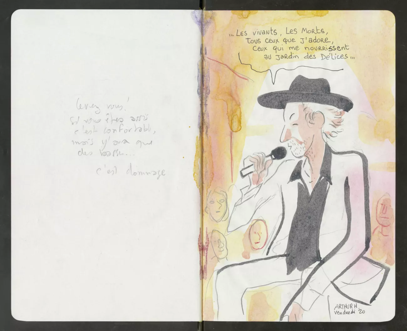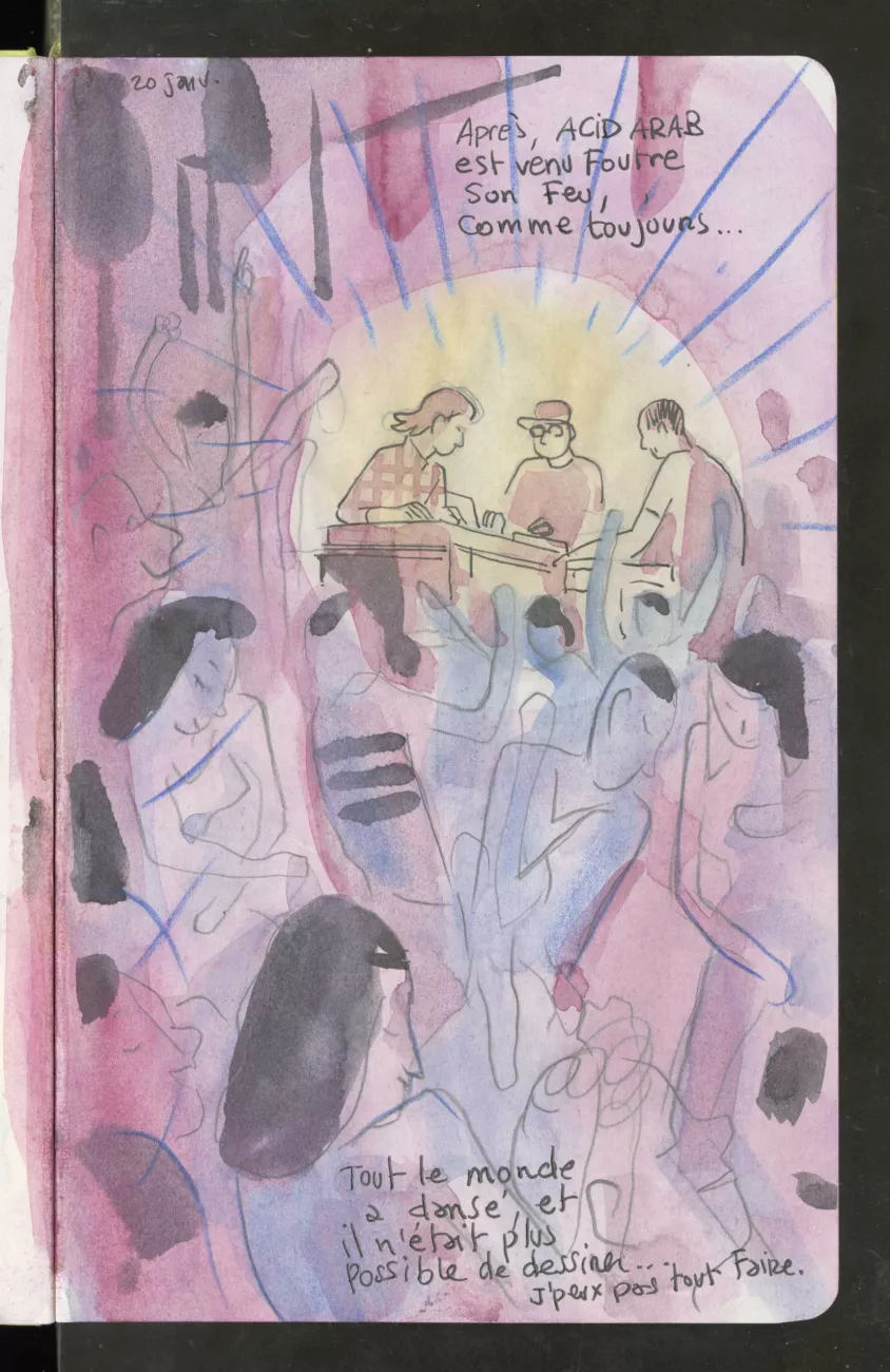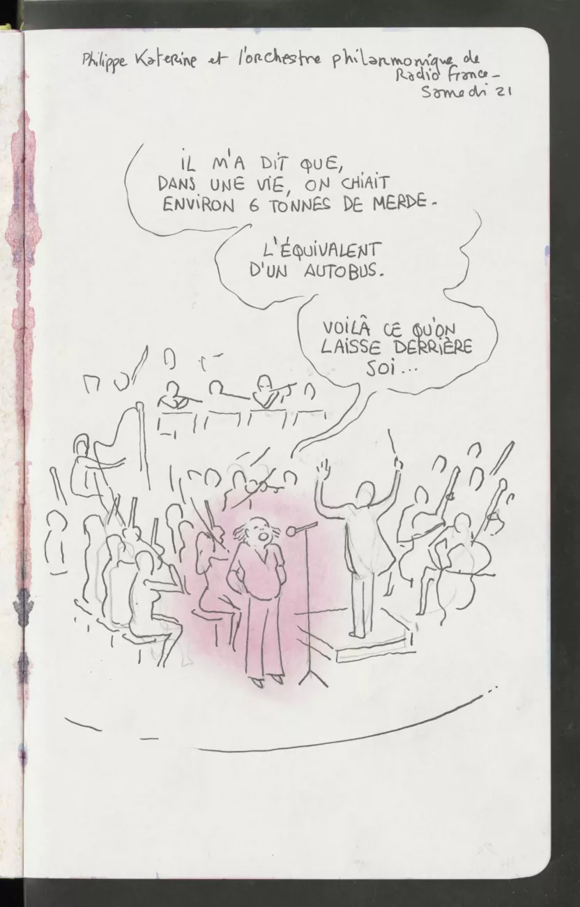 Alfred a ainsi croqué les concerts, les performances, les créations, les rencontres, les masterclasses, les soirées clubbing… dans un journal afin que tout le festival revive sous ses traits de crayons lors de l’exposition « Rock ! Pop ! Wizz ! Quand la BD monte le son » à la Cité de la BD à Angoulême.