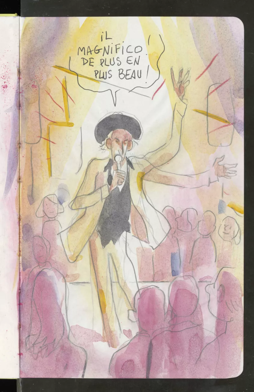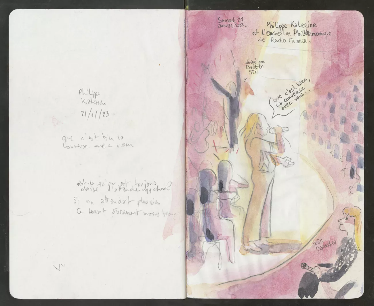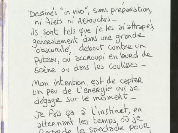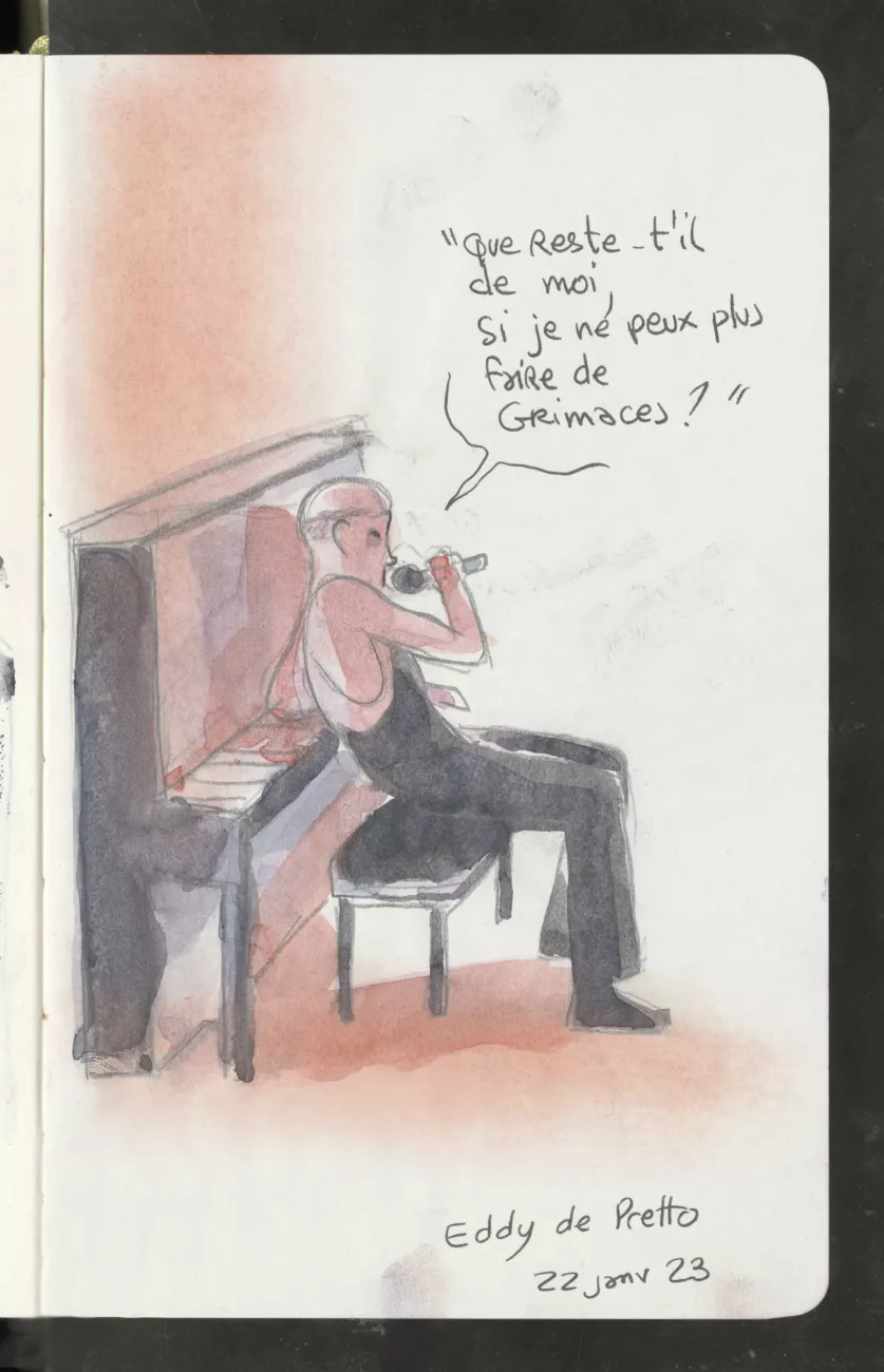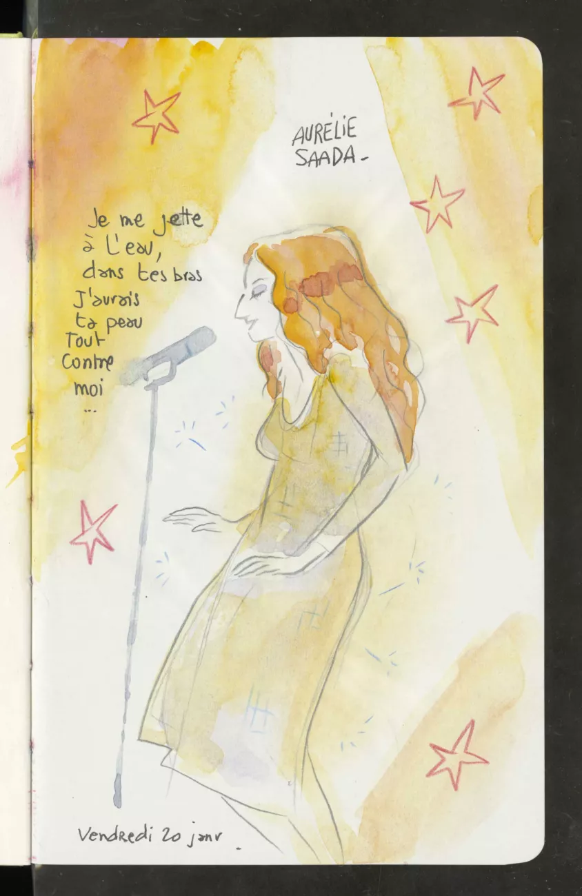 Alfred a ainsi croqué les concerts, les performances, les créations, les rencontres, les masterclasses, les soirées clubbing… dans un journal afin que tout le festival revive sous ses traits de crayons lors de l’exposition « Rock ! Pop ! Wizz ! Quand la BD monte le son » à la Cité de la BD à Angoulême.