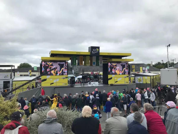 - Samedi 26 juin de 8h30 à 9h00 depuis le village départ avec Christian Prudhomme, Directeur du Tour de France par Fabrice Rigobert et Jérôme Cadet