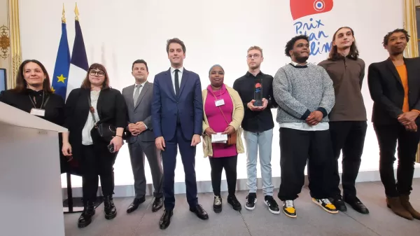 Les trophées des projets récompensés ont été remis, jeudi 13 février 2025 lors de la cérémonie à l'Elysée, par Emmanuel Macron, Président de la République en présence d'Elisabeth Borne, ministre de l’Éducation nationale, de l’Enseignement supérieur et de la Recherche ; Aurore Bergé, ministre déléguée chargée de l'Égalité entre les femmes et les hommes et de la Lutte contre les discriminations ; Émilie Frèche, présidente du jury ; Olivier Klein, ancien délégué interministériel à la DILCRAH ; Sibyle Veil, Présidente-Directrice générale de Radio France et Bruno Laforestrie, président du Comité Diversité et égalité de Radio France.