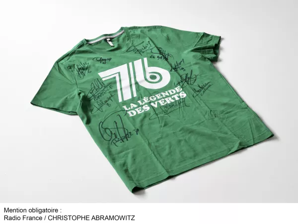 - Un maillot des Verts des années 70 de Saint-Etienne signé par les joueurs de l'époque
