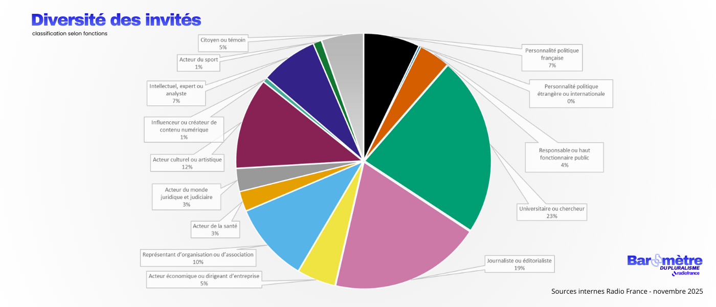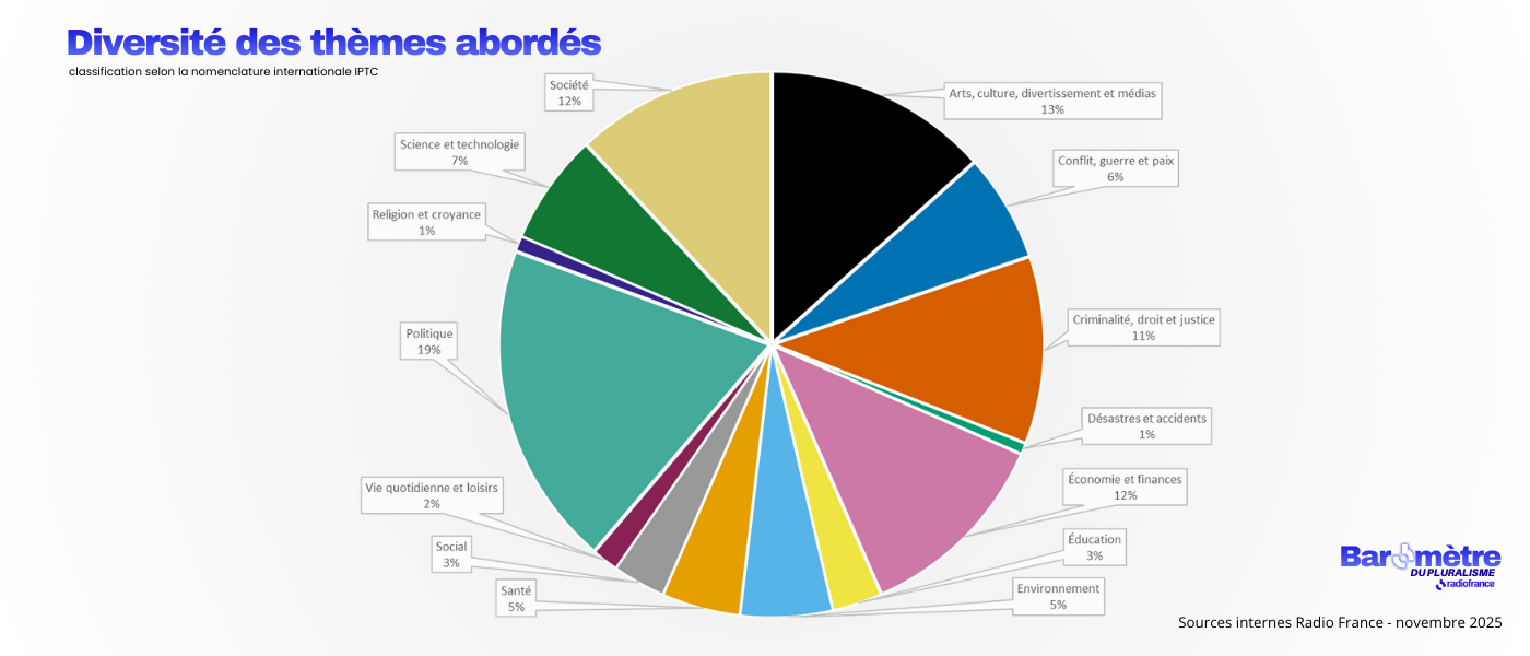 Pour être un miroir le plus fidèle possible de la diversité de la société française, les antennes de Radio France exposent une grande variété d’invités et de points de vue, sur une grande variété de sujets. À l’heure où le pluralisme des médias est abondamment débattu, Radio France rend ses données transparentes pour objectiver ces questions.