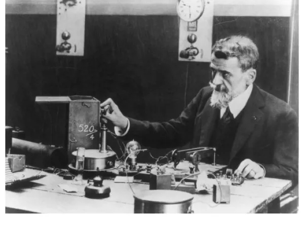 L’invention de la TSF, ou télégraphie sans fil, et l’utilisation de la propagation des ondes est due aux recherches de toute une génération de pionniers et de scientifiques à l’image de l’Allemand H. Hertz, du Français E. Branly, du Russe A. Popov et bien sûr de l’Italien Marconi.