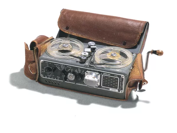 Dans les années 1950, l’usage du magnétophone à bande magnétique transforme la manière de produire les émissions et facilite les reportages en extérieur. L’utilisation d’enregistreur portable type Nagra favorise la mobilité des reporters.