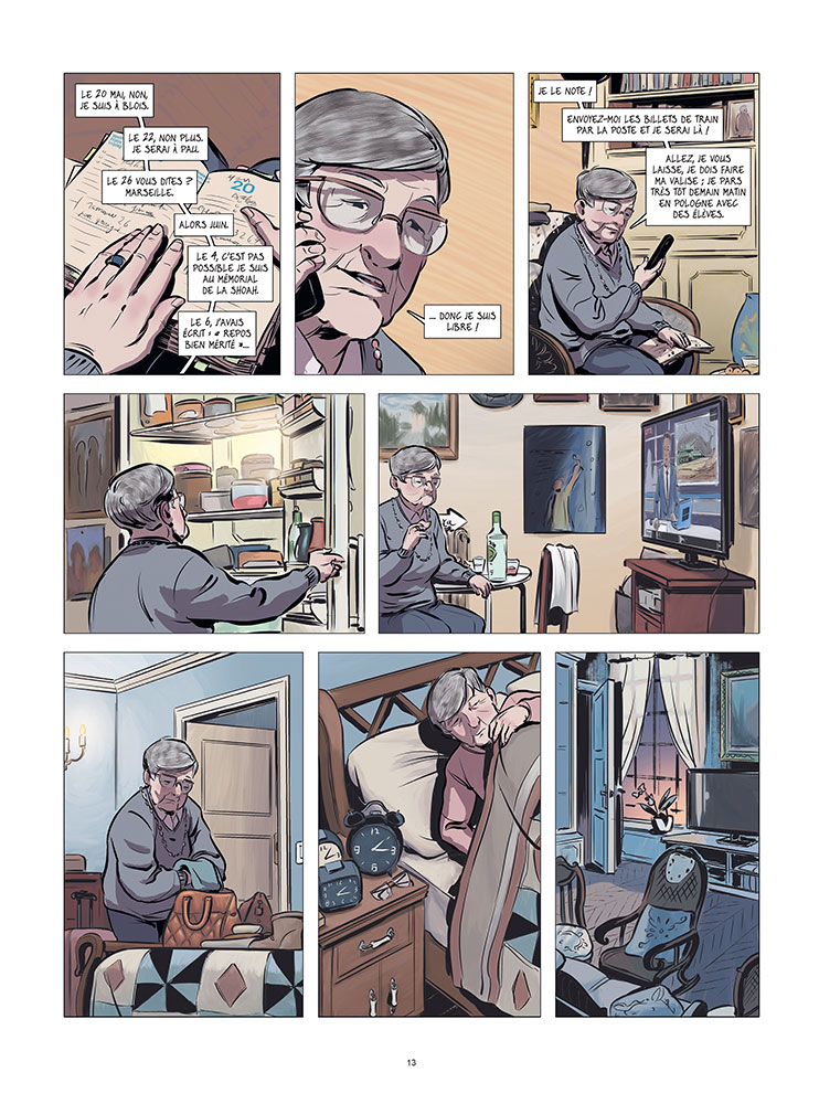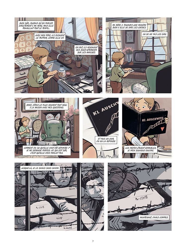 De ce voyage est née une BD, où Ginette raconte comment elle vivait avant la guerre, comment elle a découvert qu’elle était juive, comment sa famille a fui Paris avant qu’elle et son père ne soit dénoncés. Elle raconte aussi le camp, sans pathos, sans rien cacher non plus. Dans cette BD, on la voit aussi aujourd’hui, en train de raconter, de témoigner.