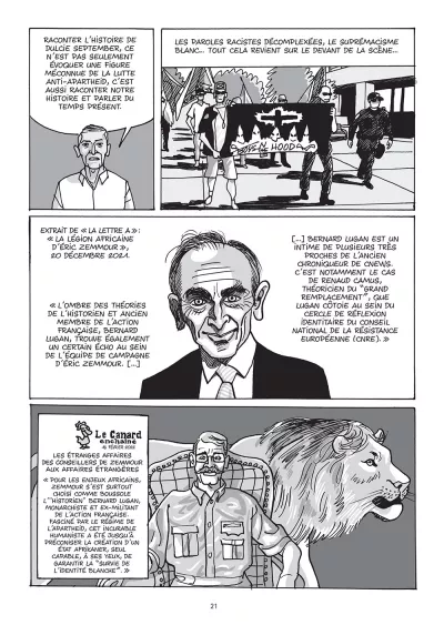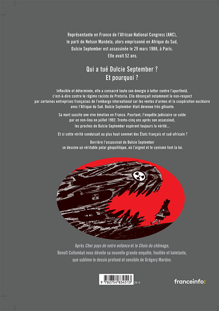 Dulcie September a-t-elle été éliminée dans le cadre d’une action d’« escadrons de la mort » sud-africains alors actifs en Europe, ou bien a-t-elle été spécifiquement ciblée parce qu’elle en savait trop sur le contournement de l’embargo dans le domaine de l’armement et du nucléaire ? Derrière l’assassinat de Dulcie September se dessine un véritable polar géopolitique, où l’argent et le cynisme font la loi.
