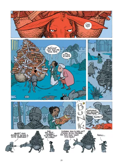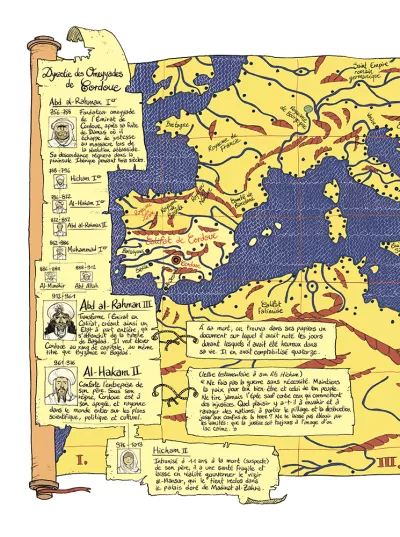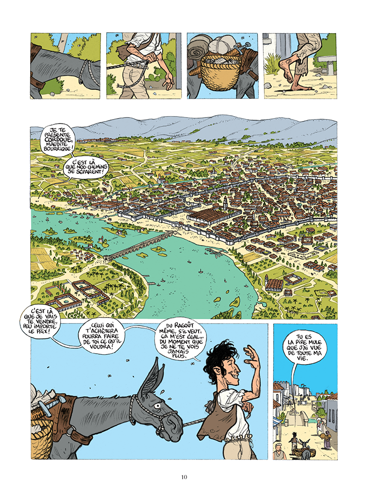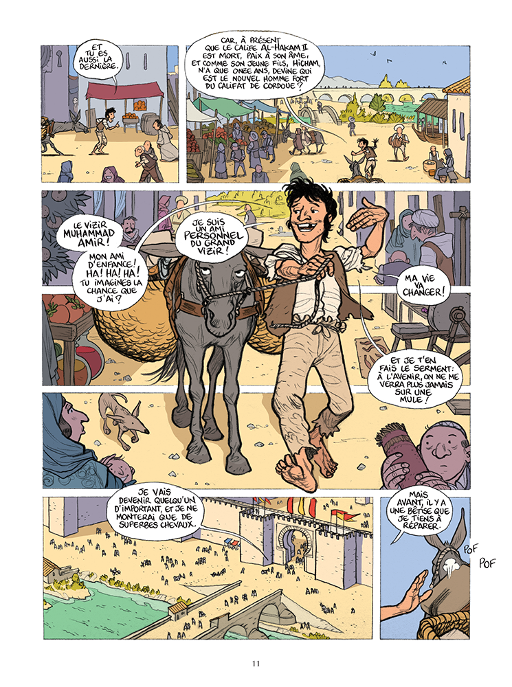 La Bibliomule de Cordoue est une sorte de road movie qui tient à la fois de la chronique historique et de la fable. Au-delà de l’aventure et de l’humour, ce récit nous plonge dans une période de l’Histoire mal connue. L’album met en valeur la flamboyance intellectuelle de la civilisation arabo-musulmane, étrangement absente des manuels scolaires comme de la production culturelle contemporaine.