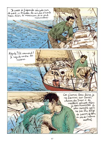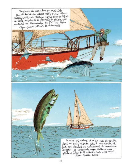 La longue Route est le récit mythique de cette aventure nautique entre calmes et tempêtes, où le navigateur goûte à la liberté absolue. Plus de cinquante ans plus tard, Stéphane Melchior et Younn Locard donnent à voir les immensités bleues et le cheminement existentiel d'un homme qui résonne toujours avec la même modernité.