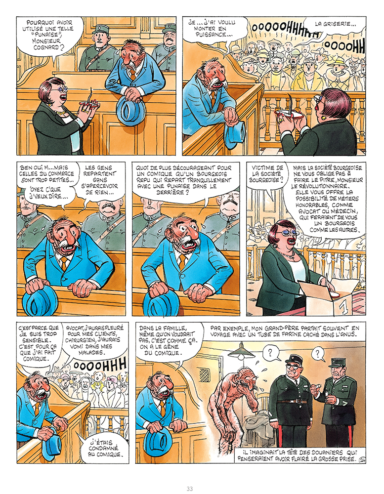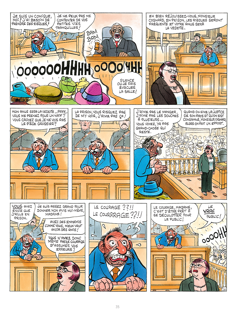 Robert Cognard est un humoriste. Un vieil humoriste. Il est donc en danger. Dans un monde exigeant, où les gens veulent toujours du nouveau, il se sent comme un citron pressé jusqu’au trognon. Son patron ne le soutient plus, sa femme menace de partir. Il aimerait trouver une idée pour finir en beauté, se rend au salon du rire, théorise sur Popeye, Corto Maltese et Chopin puis commet l’irréparable : une mauvaise blague l’envoie en prison après un procès fracassant.