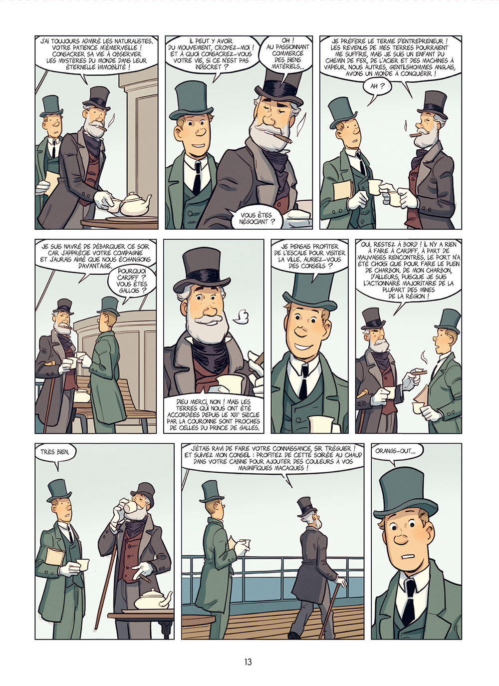 1875. Corentin Tréguier prend la mer direction Bornéo pour se consacrer à l’étude des primates. Mais lors d’une escale à Cardiff, un groupe de marins l’initient à la culture des pubs anglais et notre biologiste candide se réveille le lendemain sans argent, sans affaires, tandis que le bateau fait voile vers Suez. Ses rencontres le conduisent dans une mine de charbon, où il se fait engager contre son gré comme piqueur. Il va alors partager le quotidien d’hommes, de femmes et d’enfants dont les conditions de travail l’horrifient. Et le jour où une violente explosion conduit à la mort de nombreux mineurs, Corentin est projeté à la tête de l'une des grèves les plus importantes de l'histoire du pays… Devenu leader d'un mouvement révolutionnaire sans précédent, notre héros malgré lui fera vaciller le capitalisme occidental jusqu'aux portes de Buckingham Palace.