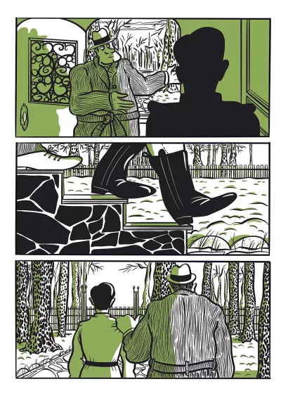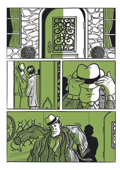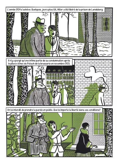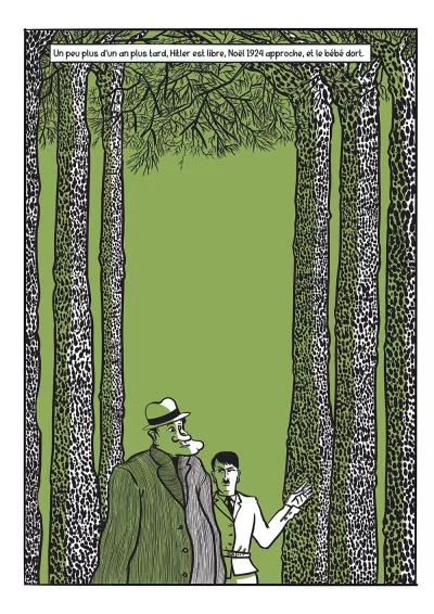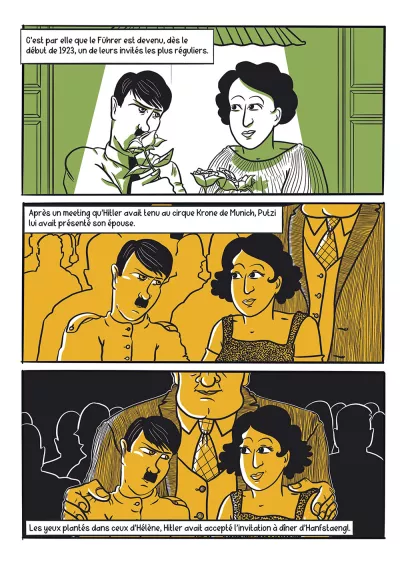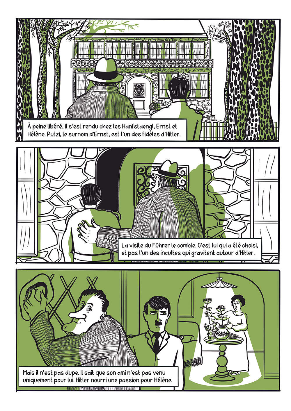 Louison et Thomas Snégaroff décident ensemble de l’adaptation en bande dessinée du roman éponyme en resserrant la narration sur Hitler et son pianiste dans leur face à face tragique. Non sans rappeler la relation bancale de Marylin Monroe à son psy… Ici plongés au cœur du pouvoir nazi, Thomas Snégaroff et Louison déploient de case en case les jeux de pouvoir et le fanatisme en politique avec des lignes résolument actuelles, à l’heure où se réveille à travers le monde l’idéologie fasciste.