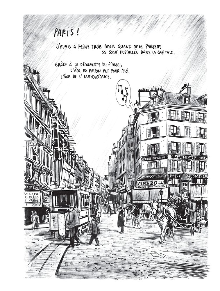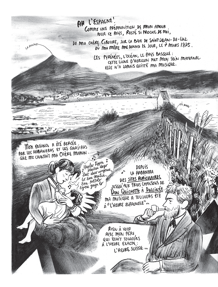Cette bande dessinée saisit avec justesse le ton d’un Ravel espiègle, fou de mots et passionné de musique.