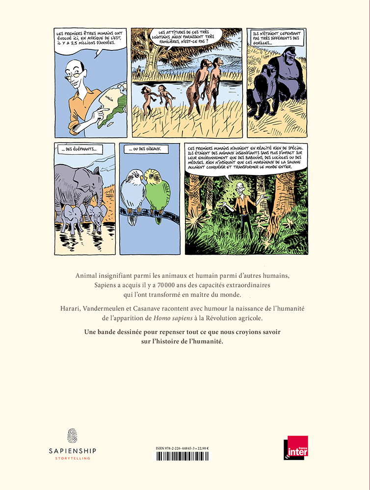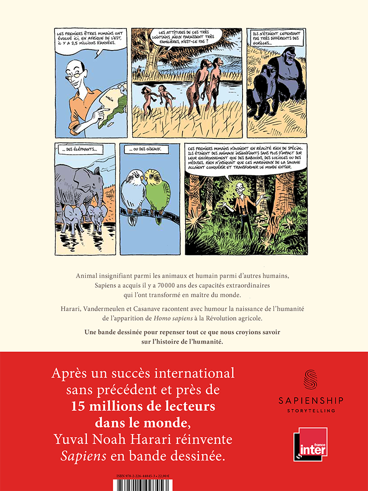Yuval Noah Harari, David Vandermeulen et Daniel Casanave réinventent le best-seller international, Sapiens, une brève histoire de l’humanité et racontent en bande dessinée la naissance de l’humanité, de l’apparition de Homo Sapiens à la Révolution agricole.