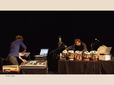 Philippe Foch et Mathias Delplanque exploitent des matières sonores multiples et contradictoires : peaux, bois, pierres, métaux versus timbres et traitements numériques. Leur vocabulaire musical, basé sur l’interaction en temps réel entre percussions et traitement électronique est nourri par l’intense activité live des deux musiciens. Initialement attaché à l’improvisation, à la recherche de nouveaux modes de jeu et d’interactions entre acoustique et électronique, le duo a publié plusieurs albums et composé pour la danse contemporaine.