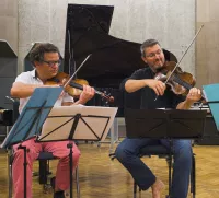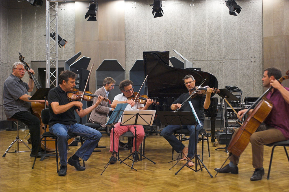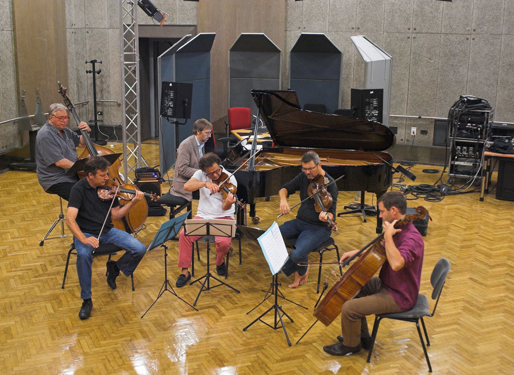 Lorsque Jean-Philippe Collard-Neven et Jean-Louis Rassinfosse ont rencontré la première fois le Quatuor Debussy, le répertoire qu’ils allaient jouer ensemble n’était pas encore fixé. Le souhait était de faire rencontrer un quatuor classique qui pratiquait des ouvertures vers le jazz, la danse, le cirque et un duo atypique réunissant contrebassiste de jazz et un pianiste polymorphe, un duo actif ayant multiplié les expériences à la lisière du classique, du jazz, de la chanson, de la musique de film.