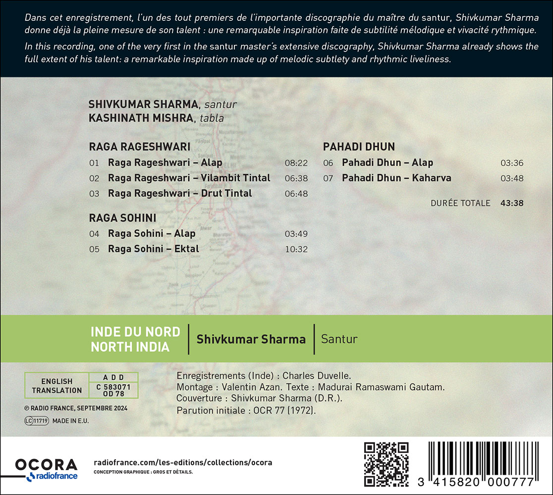 In this recording, one of the very first in the santur master's extensive discography, Shivkumar Sharma already shows the full extent of his talent: a remarkable inspiration made up of melodic subtlety and rhythmic liveliness.