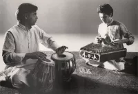 The tabla accompaniment is provided by Kashinath Mishra [1937], a disciple of the late Pandit Anokhelal Mishra from Benares.