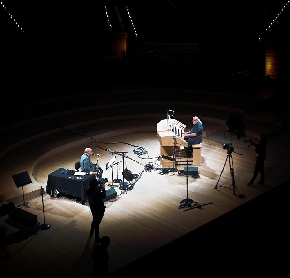 Andy Emler, composition et orgue de l’Auditorium de Radio France. David Liebman, saxophones soprano et ténor.