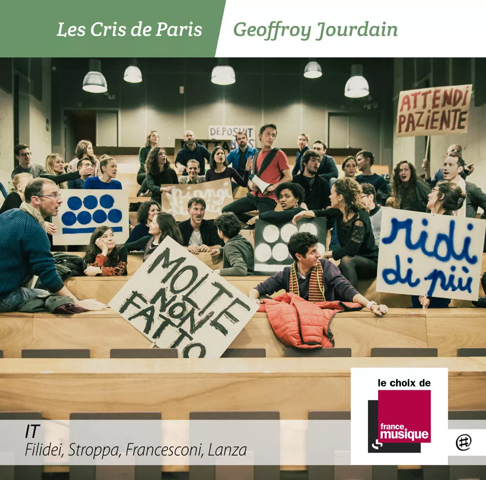 Créés et imaginés par Geoffroy Jourdain, Les Cris de Paris se consacrent à l’art vocal sous toutes ses formes. Ils s’intéressent à la mise en œuvre de créations de concerts et de spectacles musicaux novateurs, en compagnie de metteurs en scène, de comédiens, de chorégraphes et de plasticiens.