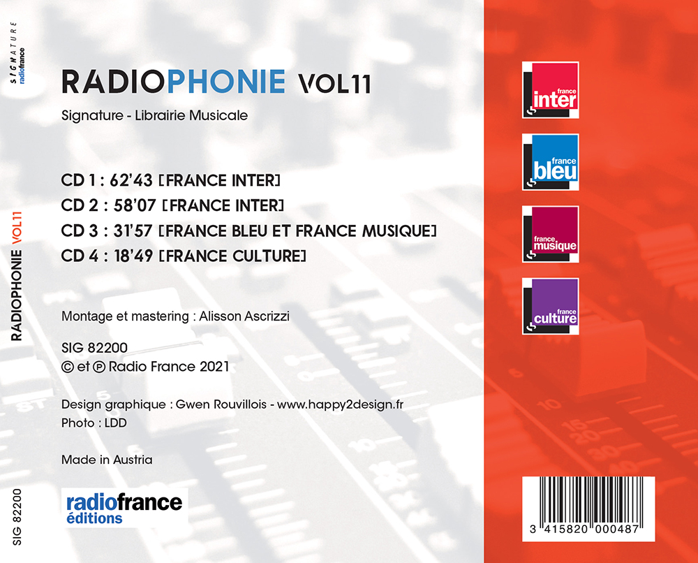 CD 1 38’53 FRANCE INTER - CD 2 64’48 FRANCE INTER - CD 3 31’57 FRANCE BLEU FRANCE MUSIQUE - CD 4 18’49 FRANCE CULTURE