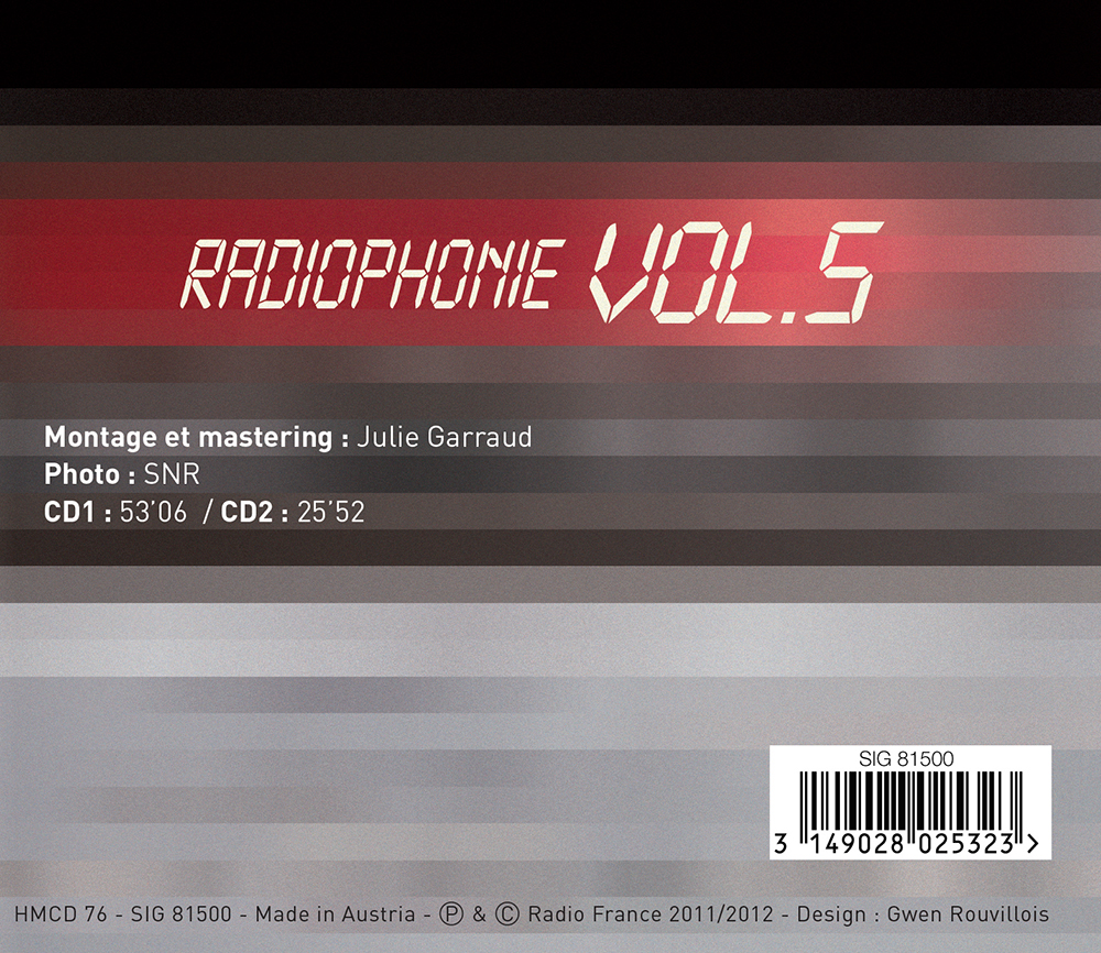 CD1 53’06 : France Inter, France Musique / CD 2 25’52 : France Bleu, franceinfo, France Culture, France Inter, Mouv'