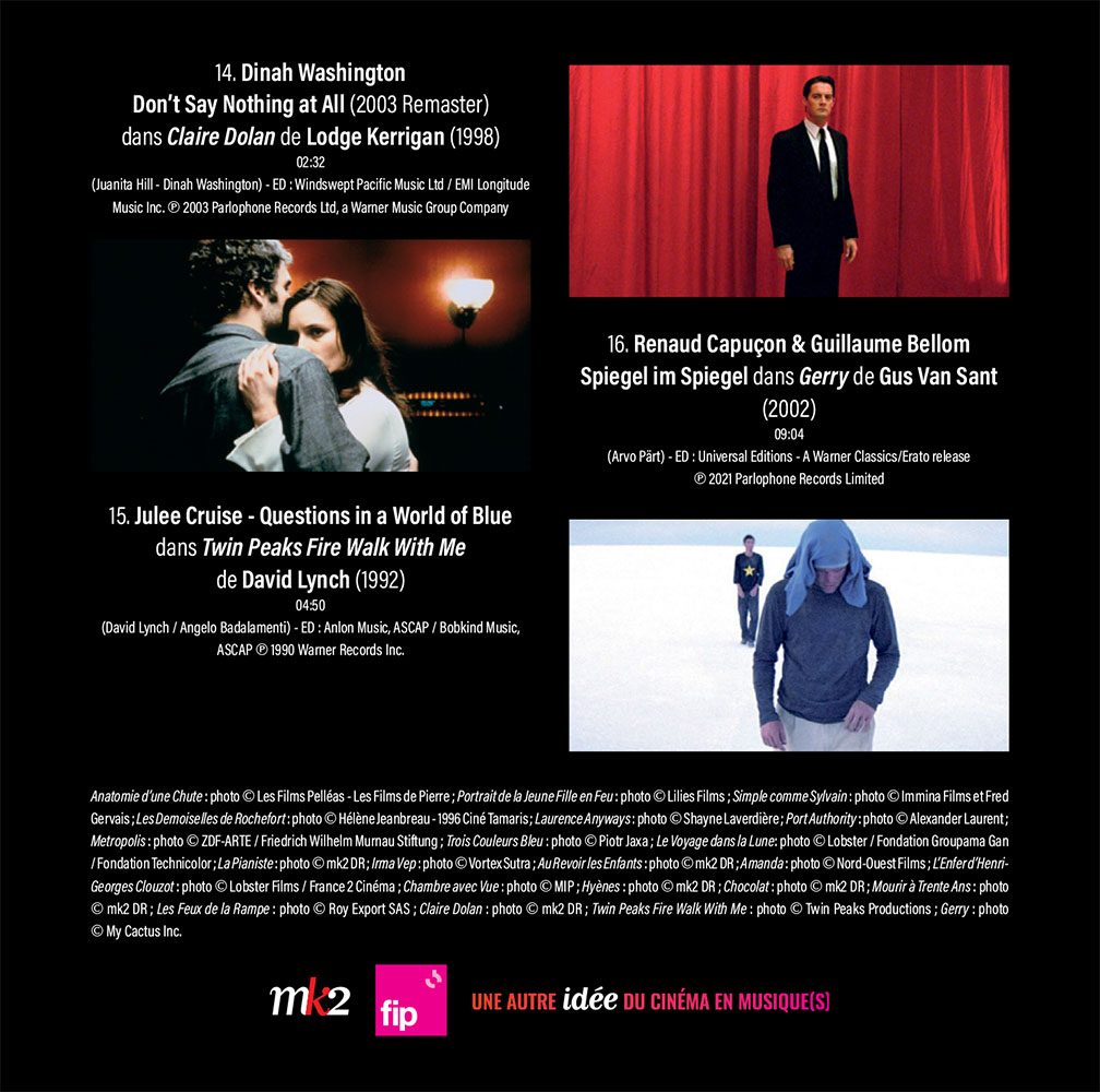 S’inscrivant dans la continuité des nombreuses actualités de mk2 (biographie de Marin Karmitz par Antoine de Baecque chez Flammarion, auto édition du mook mk2 50 ans, rétrospective mk2 à la Cinémathèque Française, sortie du film Souviens toi du futur ! de Romain Goupil le 23 octobre…) qui donneront lieu à autant de relais médias, ce projet ne se contente pas d'être une simple compilation : c’est une invitation à voyager à travers des mélodies qui ont marqué l'histoire du cinéma. Élaborée avec soin par les programmateurs de Fip, en s'inspirant de la prestigieuse collection mk2, et en étroite collaboration avec Warner Music France, cette compilation propose une relecture musicale de films du monde entier, de classiques ou de raretés. Instrumentale ou électronique, classique, pop, jazz ou rock, chaque extrait de bande originale choisi raconte une autre vision du cinéma et de la musique, éveillant une émotion particulière et invitant à la découverte.