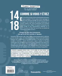 Franceinfo a fait comme si elle y était et en a tiré cinquante chroniques, faisant revivre de l’intérieur l’épreuve de la mobilisation, les grandes batailles, le quotidien dans les tranchées, les grèves, l’armistice… Autant d’événements majeurs analysés et décryptés ensuite par Thomas Snégaroff qui revient sur leur importance, leur impact, leur place dans une histoire globale.