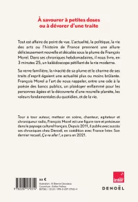 Depuis douze ans, tous les vendredis à 8 h 55, François Morel donne rendez-vous à des millions d’auditeurs sur les ondes de France Inter. Entre billets d’humeur, réactions à l’actualité et divagations toutes personnelles, les faits marquants des deux dernières années défilent ici en