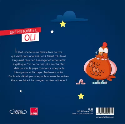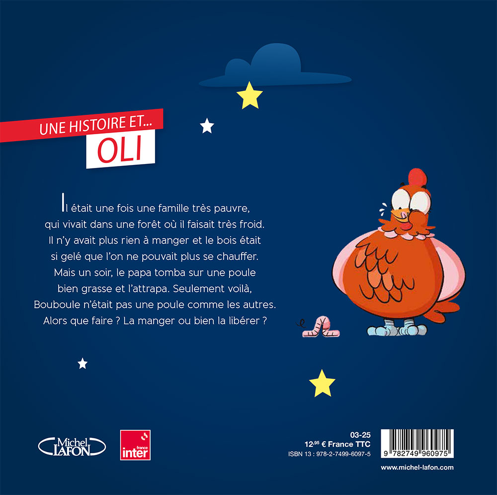 Il n’y avait plus rien à manger et le bois était si gelé que l’on ne pouvait plus se chauffer. Mais un soir, le papa tomba sur une poule bien grasse et l’attrapa. Seulement voilà, Bouboule n’était pas une poule comme les autres. Alors que faire ? La manger ou bien la libérer ?