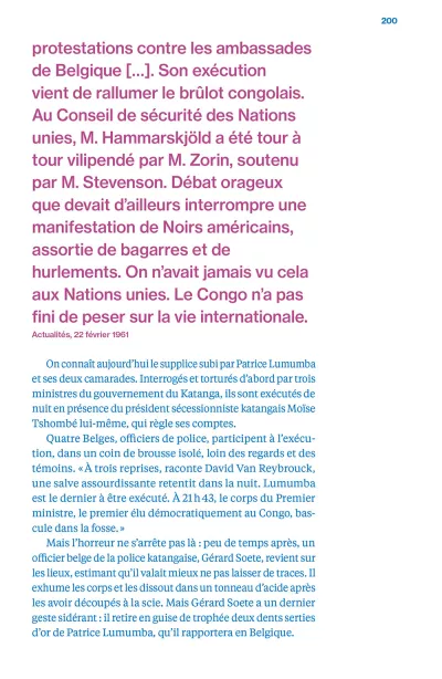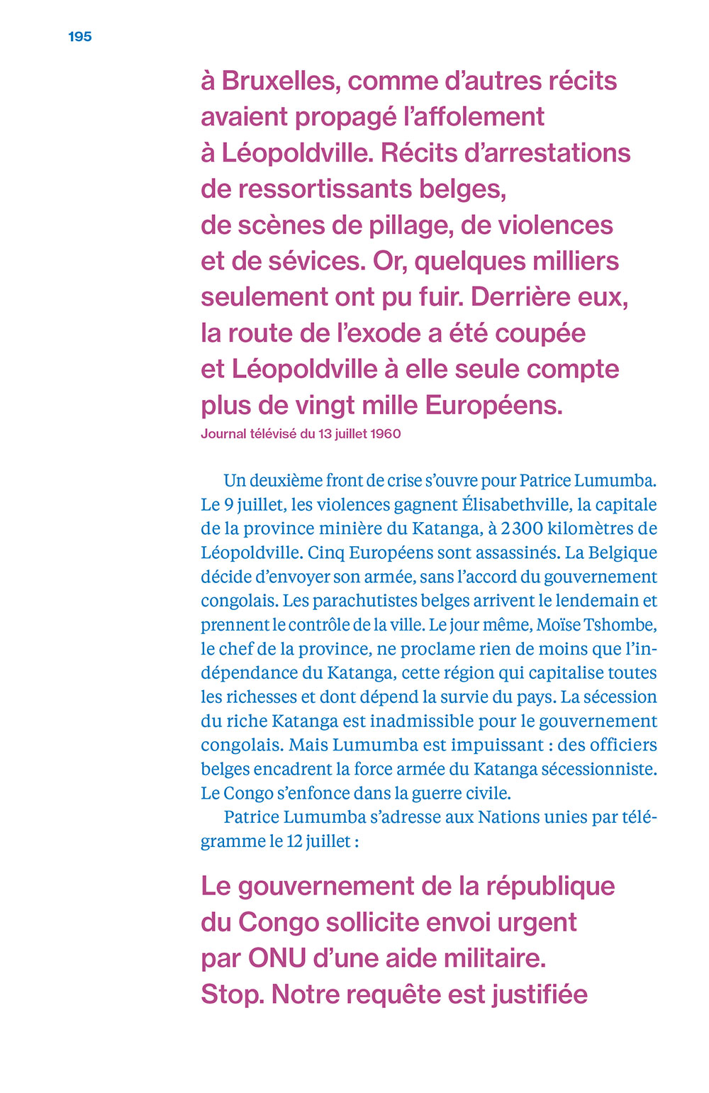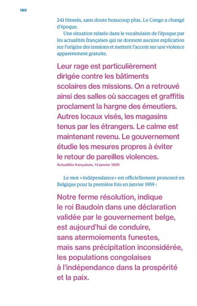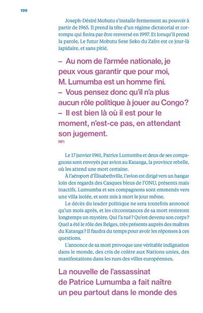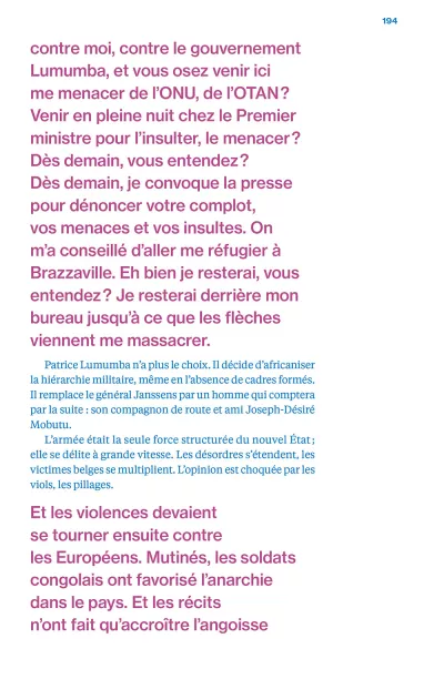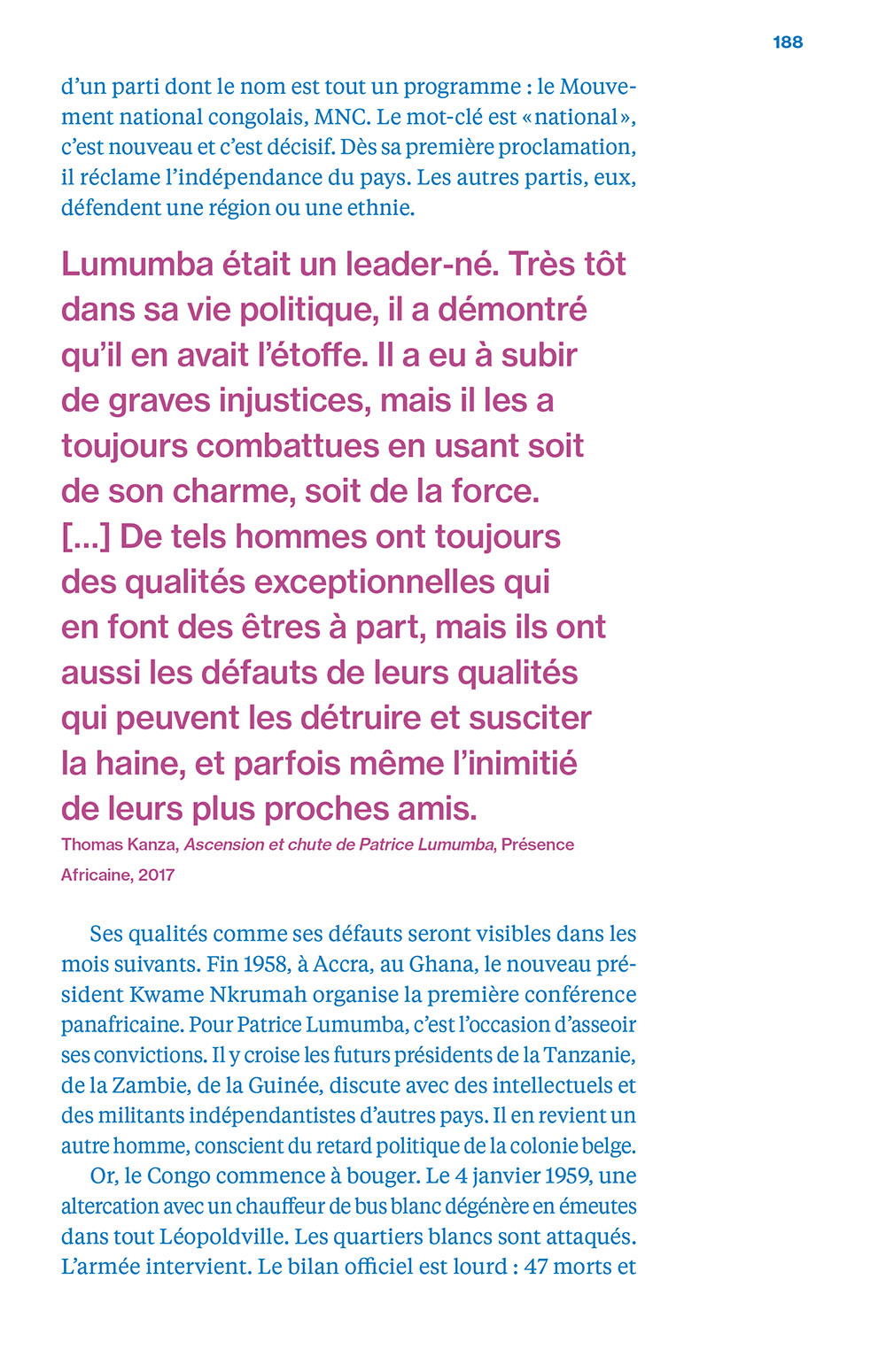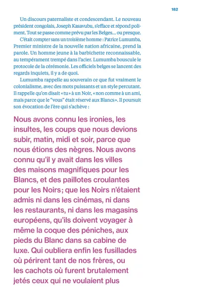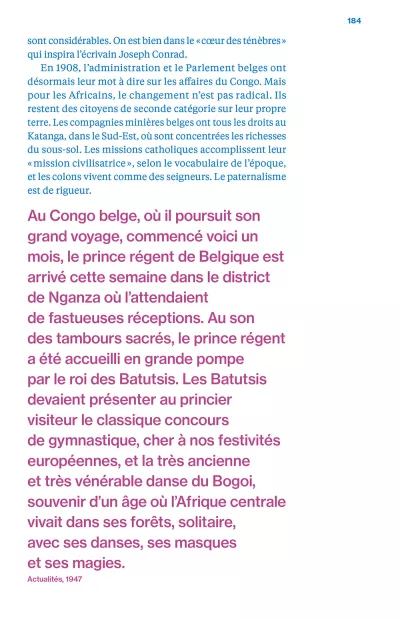 Un livre à mettre entre toutes les mains pour mieux comprendre les enjeux actuels du continent africain et la responsabilité des pays colonisateurs. On y retrouve une maquette travaillée pour être la plus claire et dynamique possible, avec une impression en couleurs et des photographies d’époque.
