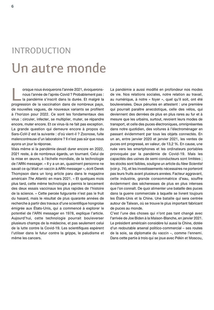 franceinfo s’associe à la parution d’ouvrage de référence avec la contribution de ses journalistes Jean-François Achilli (journaliste, présentateur des Informés), Eric Biegala (Grand reporter, rédaction internationale de Radio France), Isabelle Raymond (journaliste, cheffe du service Économie & Social de franceinfo), Olivier Emond (journaliste, chef du service Sciences, Santé, Environnement, Technologies de franceinfo), Christian Chesnot (journaliste, rédaction internationale de Radio France).