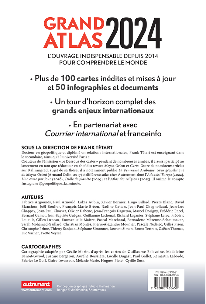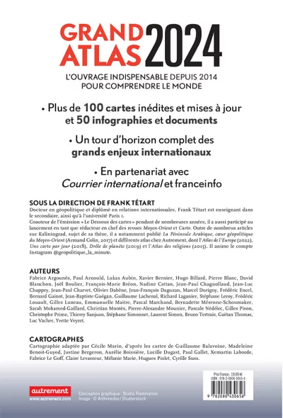 Frank Tétart est docteur en géopolitique de l’Institut français de géopolitique (université Paris 8). Il a enseigné à Sciences Po Paris, à l’université Paris 1 et à l’Institut Européen de l’université de Genève. Il dirige le volume depuis ses débuts. Il est aussi l'auteur de nombreux atlas géopolitiques et collabore avec l'émission Le Dessous des cartes.