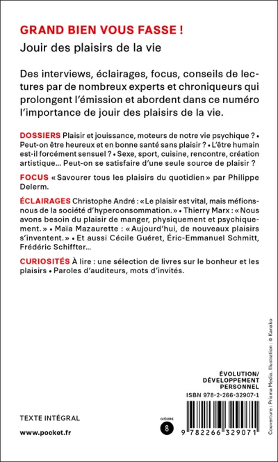 Dans ce nouveau numéro de Grand bien vous fasse !, nous sommes partis à la rencontre d’intellectuels, psychiatres, écrivains, journalistes, artistes, chercheurs, chefs… pour comprendre d’où vient le plaisir, explorer la jouissance de nos sens et de notre corps, et savourer les plaisirs de l’esprit…
