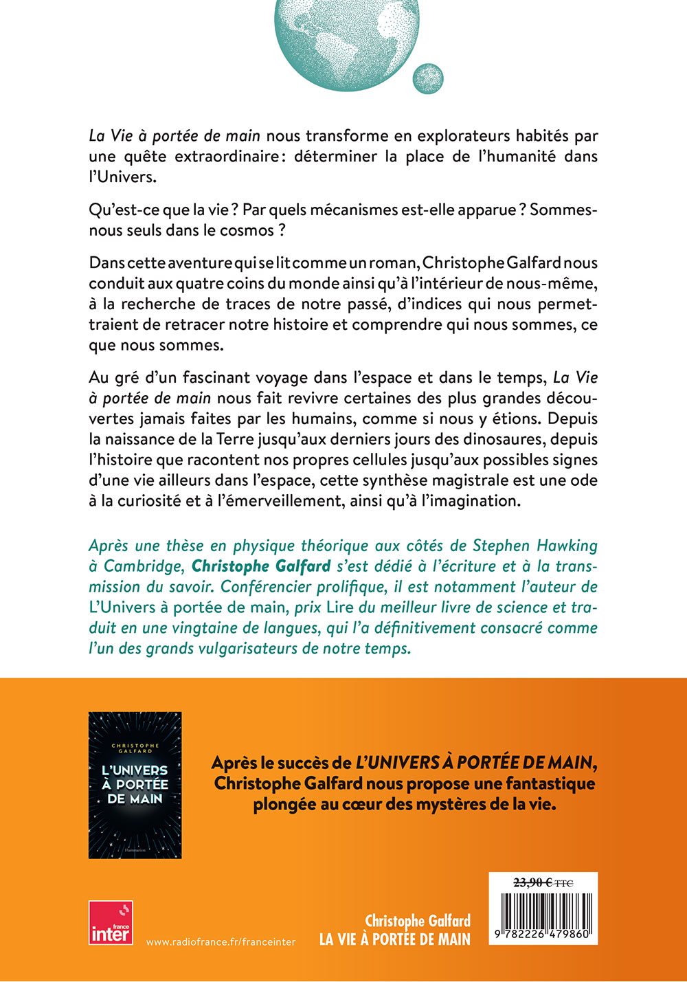 Avec La Vie à portée de main, Christophe Galfard nous transforme en explorateurs habités par une quête extraordinaire : déterminer la place de l’humanité dans l’Univers.