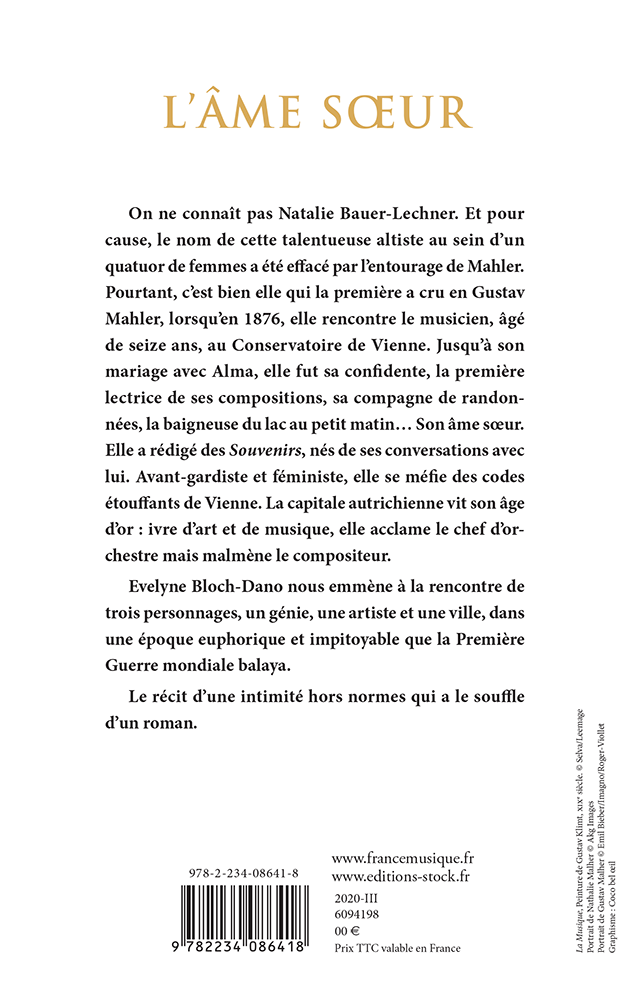 Dans cette biographie romancée, Évelyne Bloch‐Dano dresse le portrait tout en nuance de cette femme engagée, musicienne de talent avec pour toile de fond la ville de Vienne sous l’Empire austro‐Hongrois où se côtoient artistes, scientifiques et écrivains de renom.