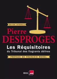 Journaliste, auteur et chroniqueur, Pierre Desproges était teinté de cynisme et d’humour noir. Les Réquisitoires ont été prononcés par Pierre Desproges (le procureur) sur France Inter dans Le Tribunal des flagrants délires, émission imaginée et produite par Claude Villiers (le président) et Monique Desbarbat avec Luis Rego (l’avocat). Diffusée quotidiennement de septembre 1980 à juin 1981, puis de septembre 1982 à juin 1983, le trio de choc caricature des gens aussi importants que Patrick Poivre d’Arvor, Jean d’Ormesson ou encore Daniel Cohn-Bendit.