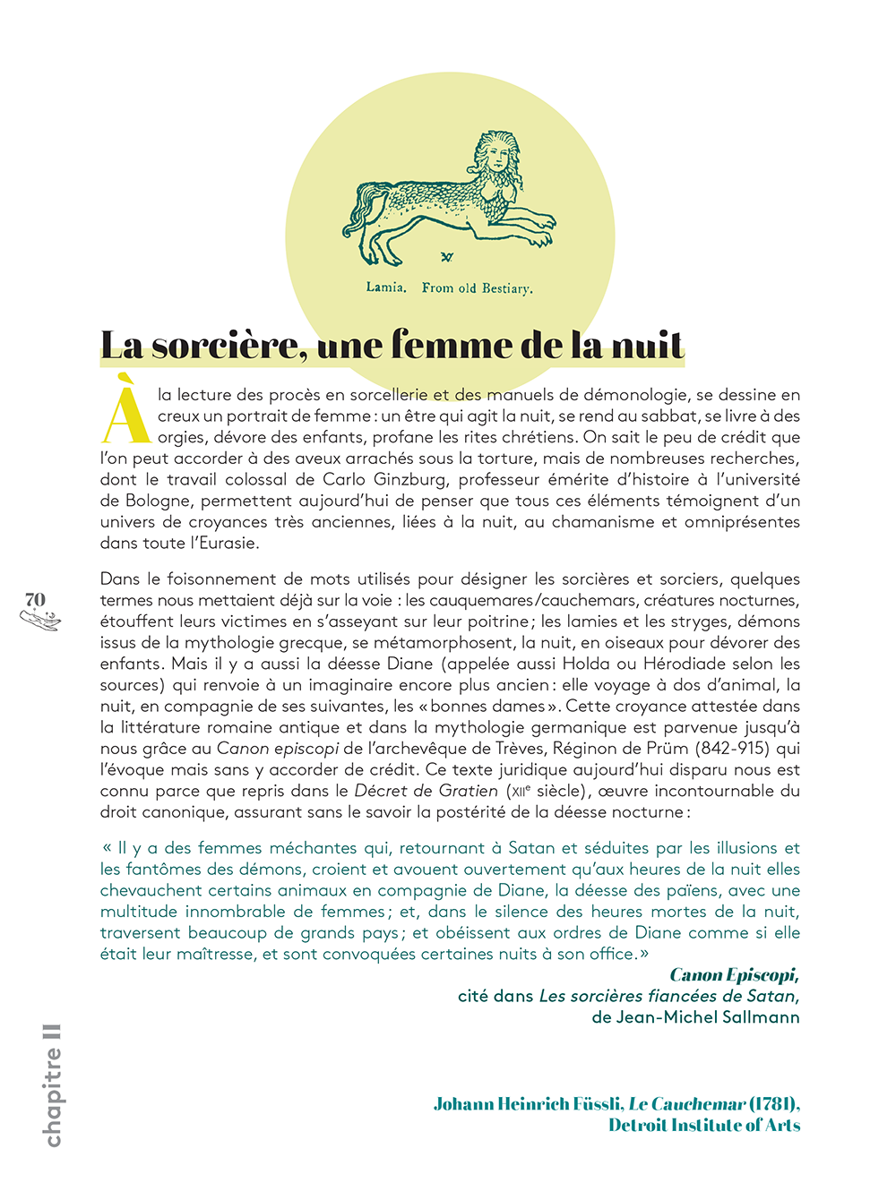 Une histoire illustrée par une riche et fascinante iconographie, des références à l’art, au cinéma et à la danse, sans oublier quelques récits emblématiques, des témoignages de sorcières, des documents d’archives, objets de sorcellerie et plantes.