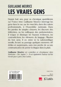 Depuis huit ans, pour sa chronique quotidienne sur France Inter, Guillaume Meurice interroge les gens dans la rue, sur les marchés, dans des salons professionnels, à l’Assemblée nationale. Dans les paroles de simples citoyens, les discours des lobbyistes, ou les soliloques des parlementaires, il traque et dissèque les fausses évidences, les contradictions, les éléments de langage, l’illusion du bon sens. Il en retire ici la substantifique moelle, livrant au passage quelques moments off drôles et surprenants, sans rien perdre de sa joie communicative de « porter la blague dans la plaie ».