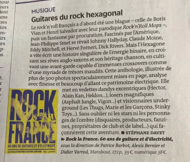 Cet ouvrage aborde aussi les salles de concerts (Gibus,...), les clubs (Rose Bonbon), les courants (punk, rock alternatif,...) , les disquaires, les labels (Cobra, Howlin Banana), les festivals (Transmusicales de Rennes...) : tous les lieux et acteurs de l’ombre qui font vivre la scène Rock made in France depuis plus de 60 ans !