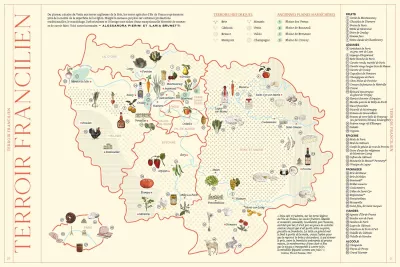 - Un inventaire des 55 produits du terroir francilien : chou de Pontoise, asperge d’Argenteuil, miel du Gâtinais, brie de Meaux…