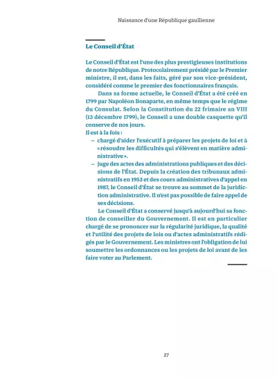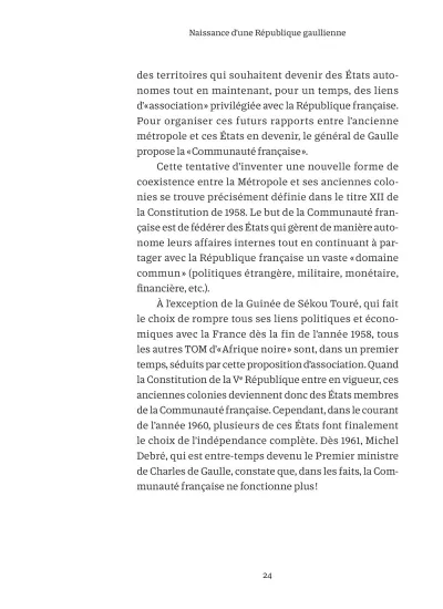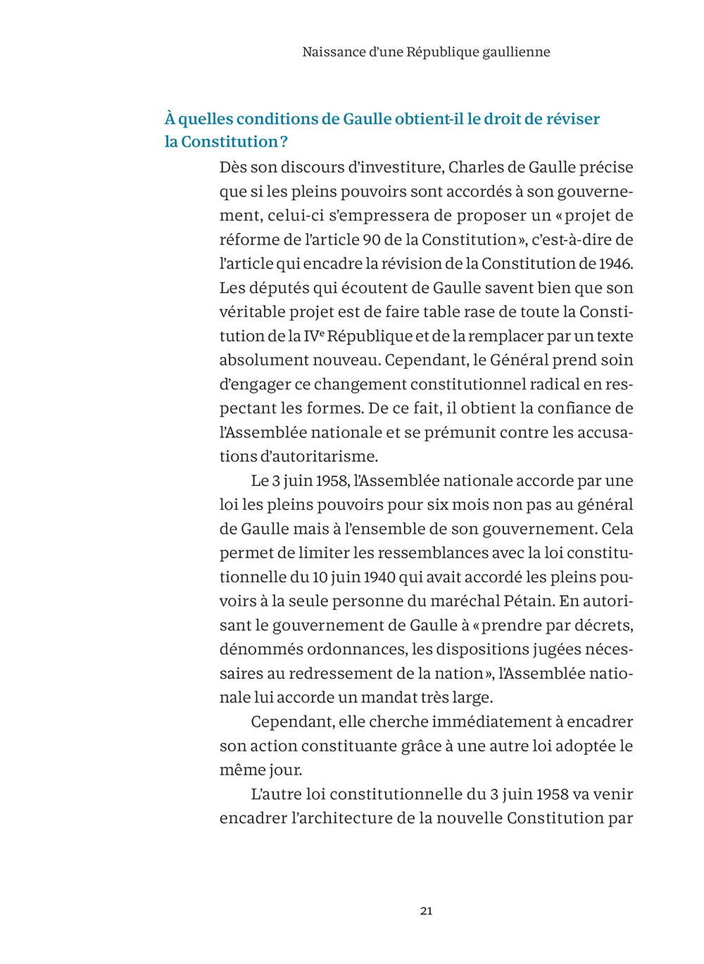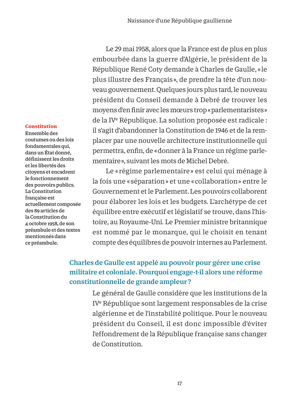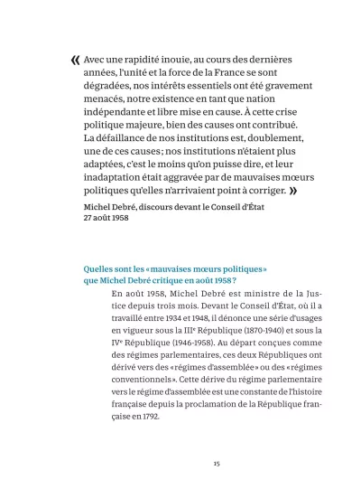 L’ouvrage est enrichi de définitions, d’extraits de discours, de biographies, indispensables pour comprendre le fonctionnement des institutions. Les infographies sont l’œuvre de Delphine Papin et les textes complémentaires de Lucie Rondeau du Noyer.